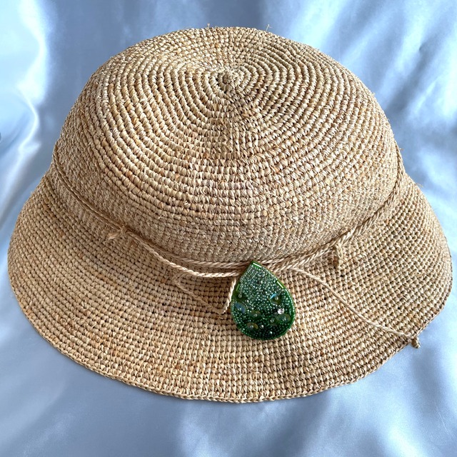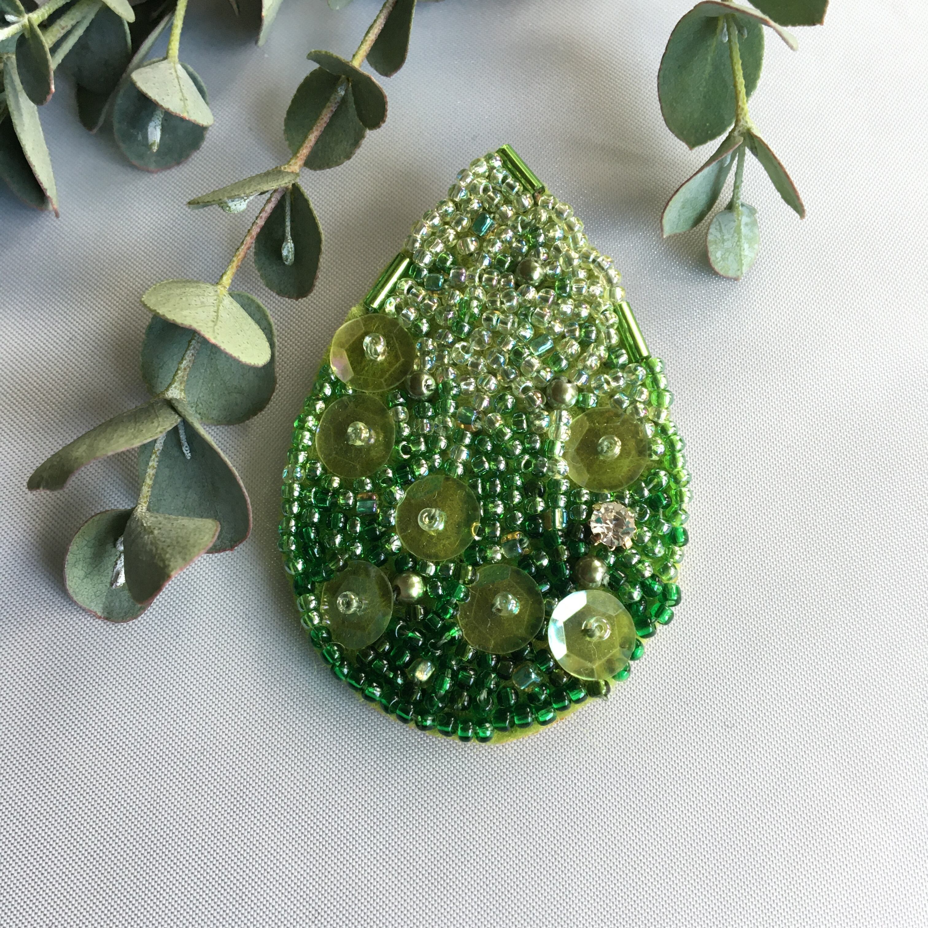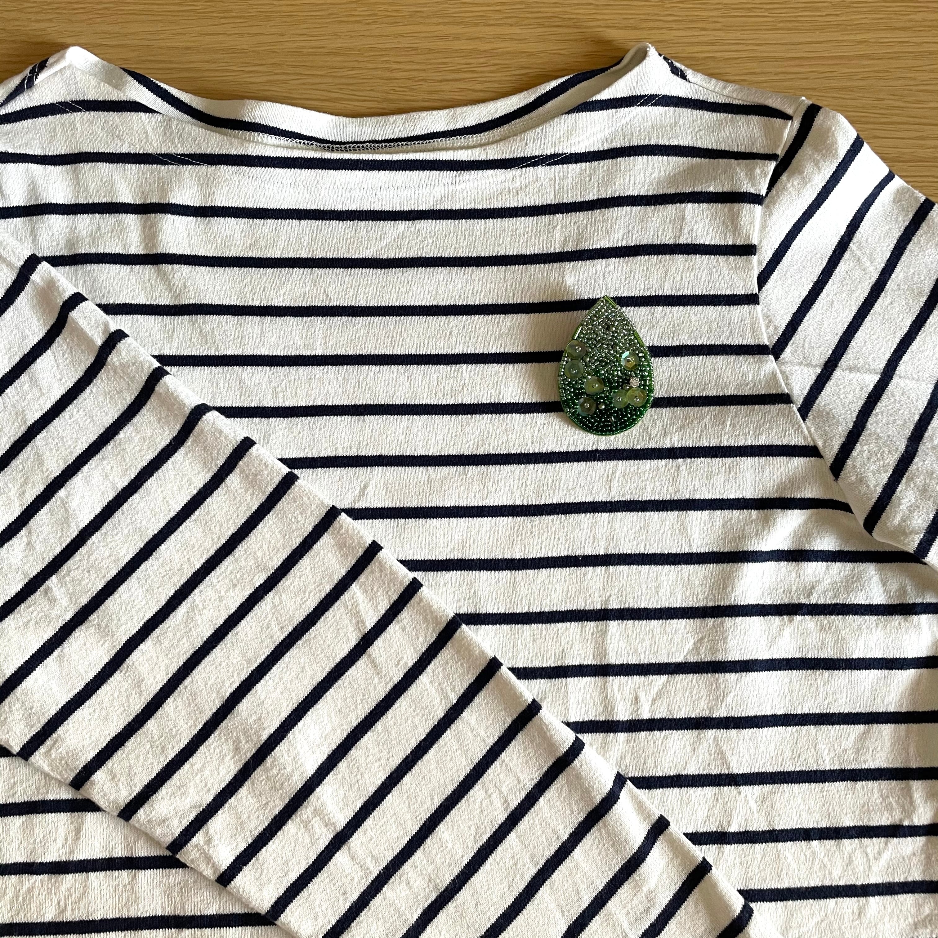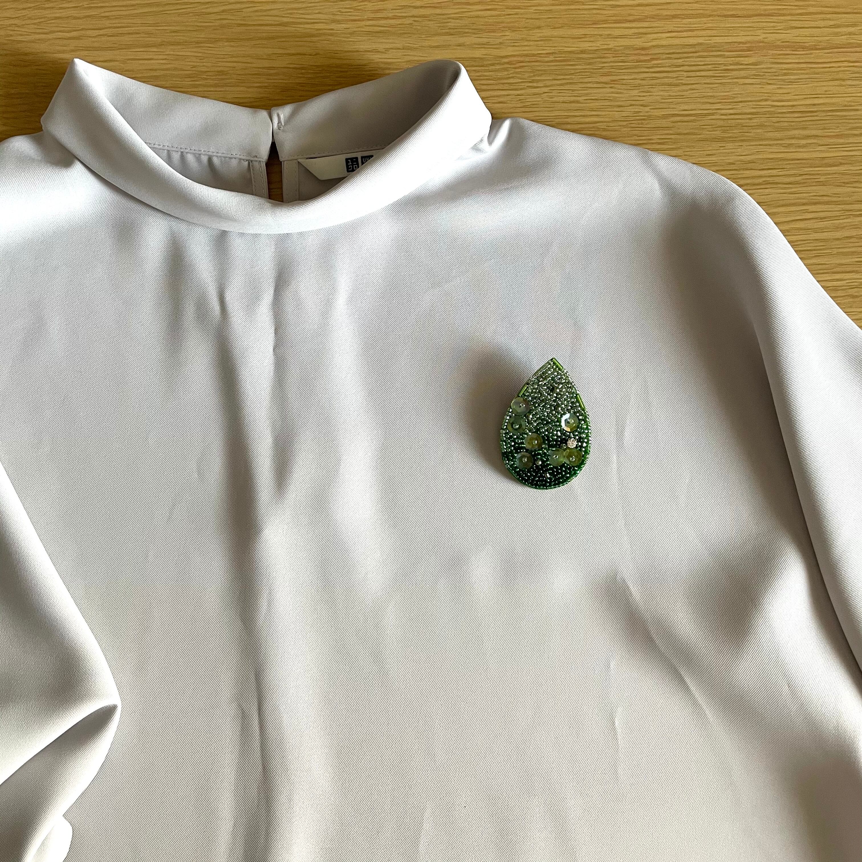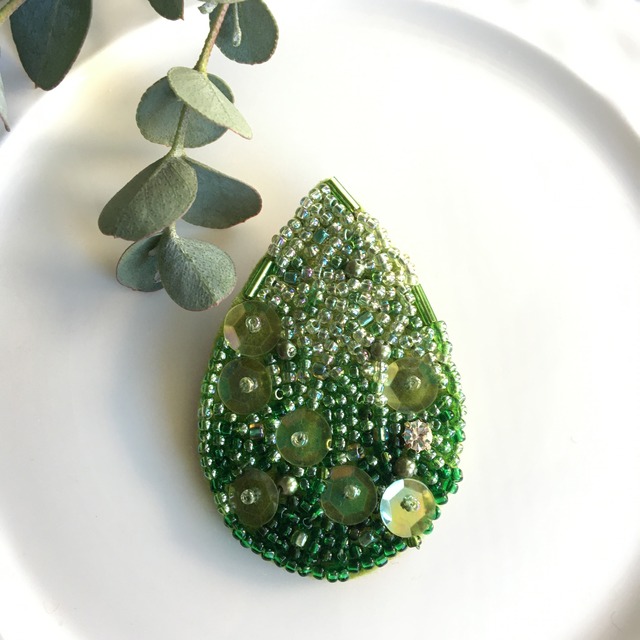 レインドロップのビーズ刺繡ブローチ*グリーン