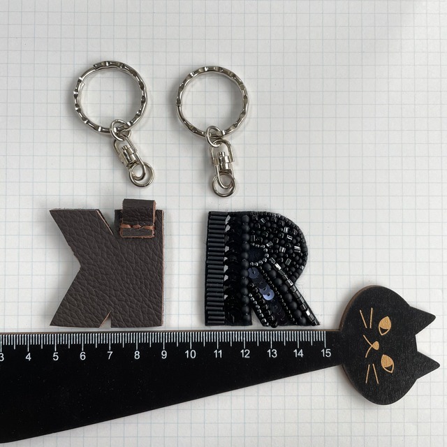 ユニセックスで使っていただける、シックでカッコいいイニシャルキーリングです