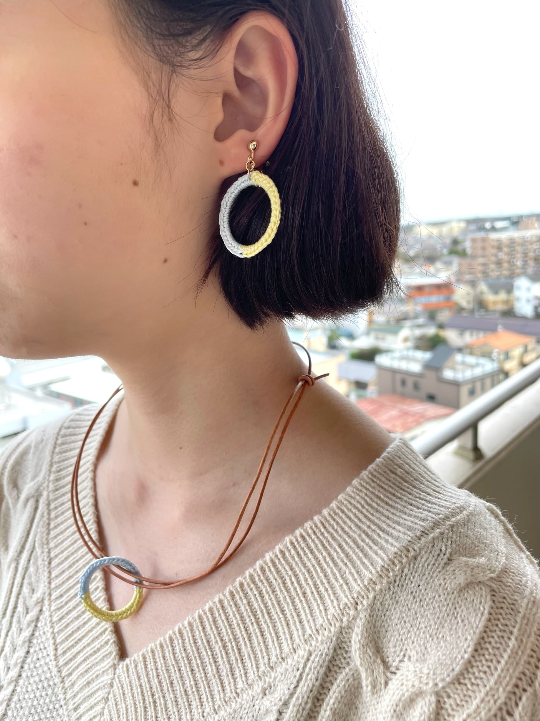 国旗は上がブルー・下がイエローですが、アクセサリーとしてのデザイン性を考え左右に配色しました
