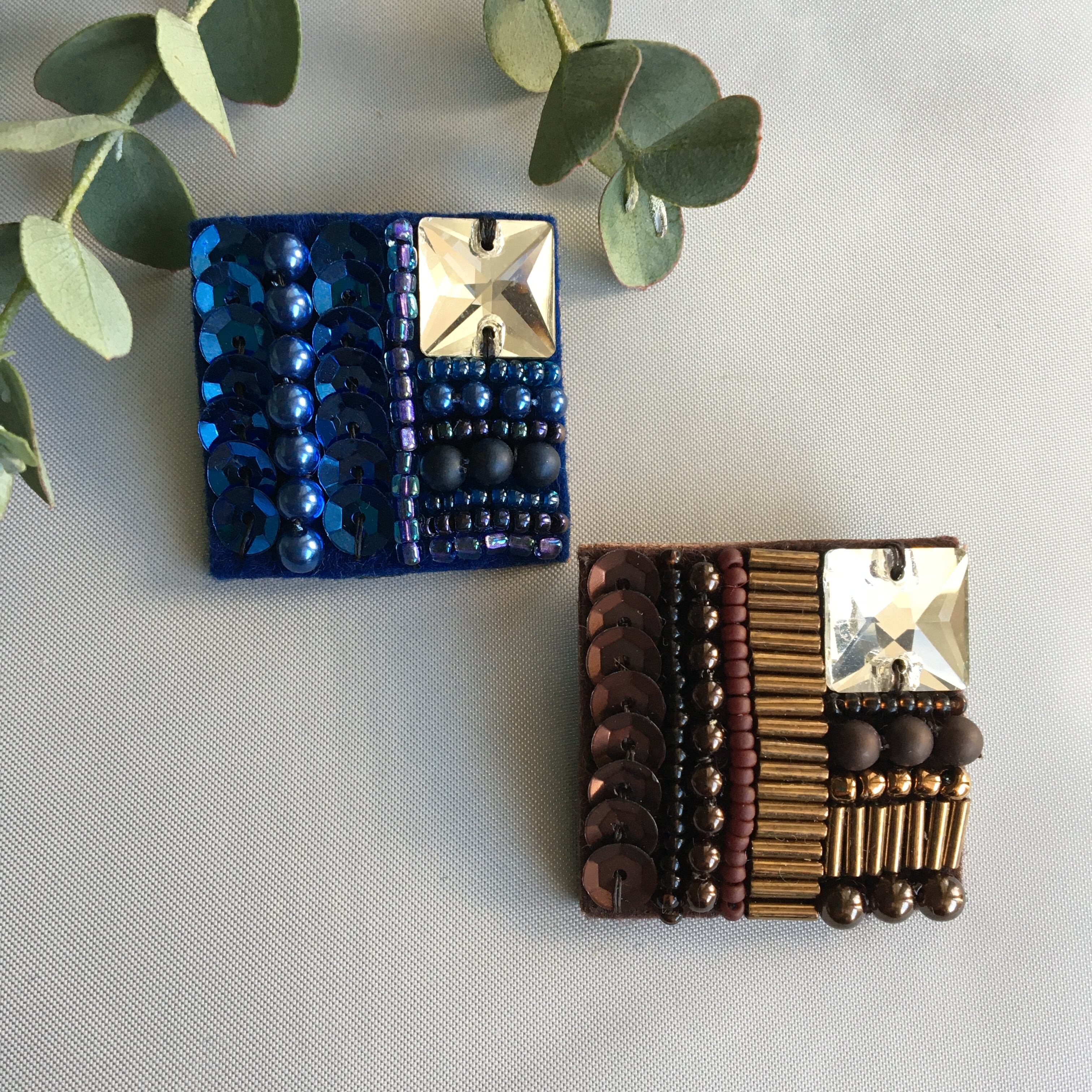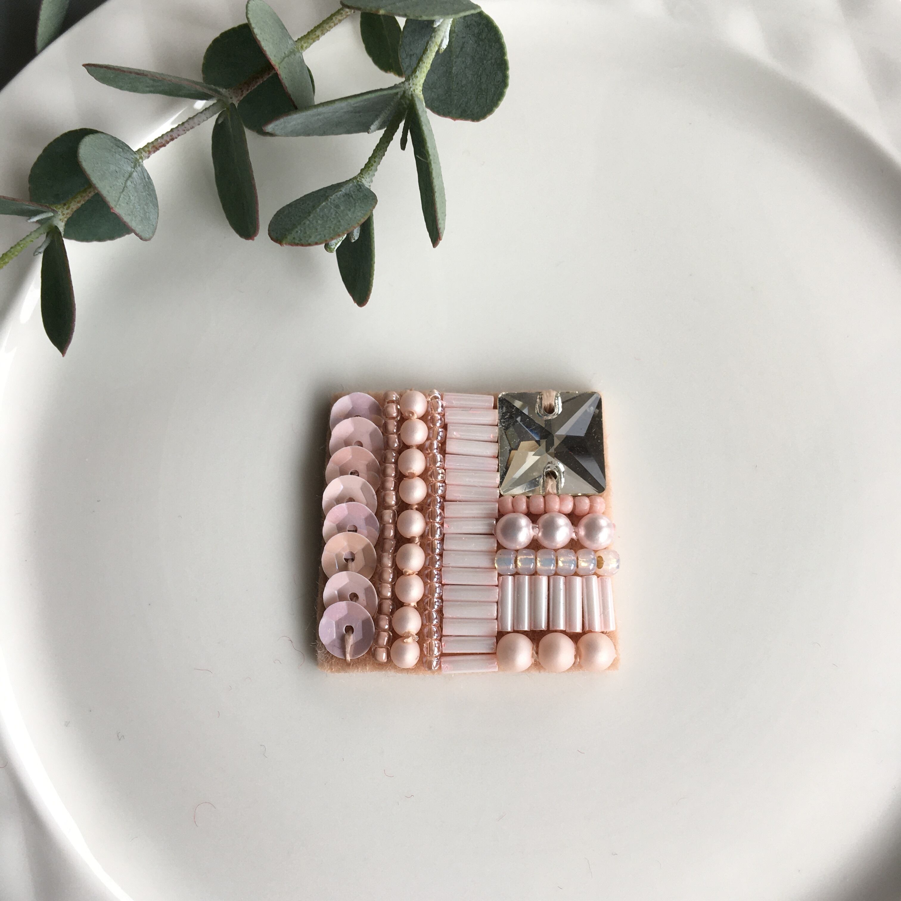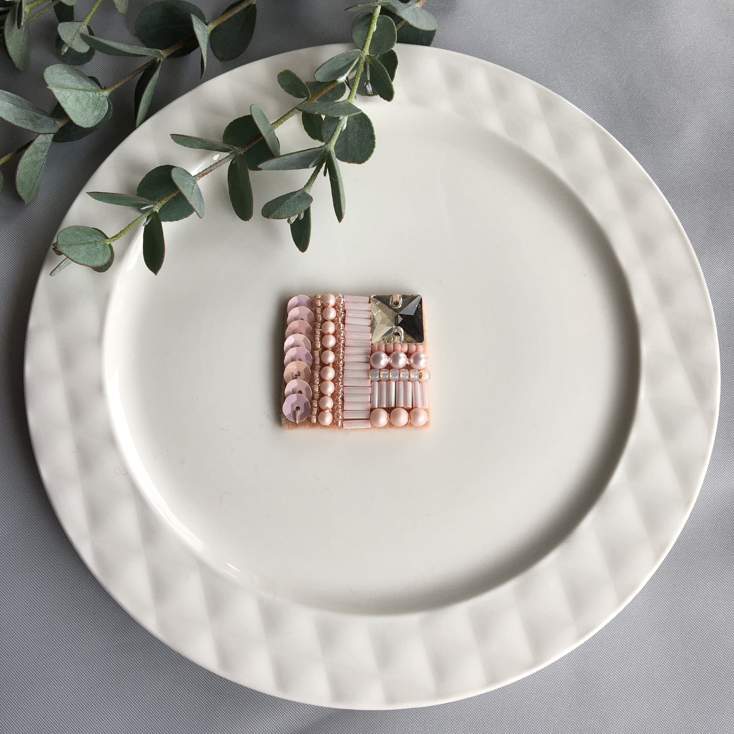 スクエアビーズ刺繍ブローチ*ベビーピンク