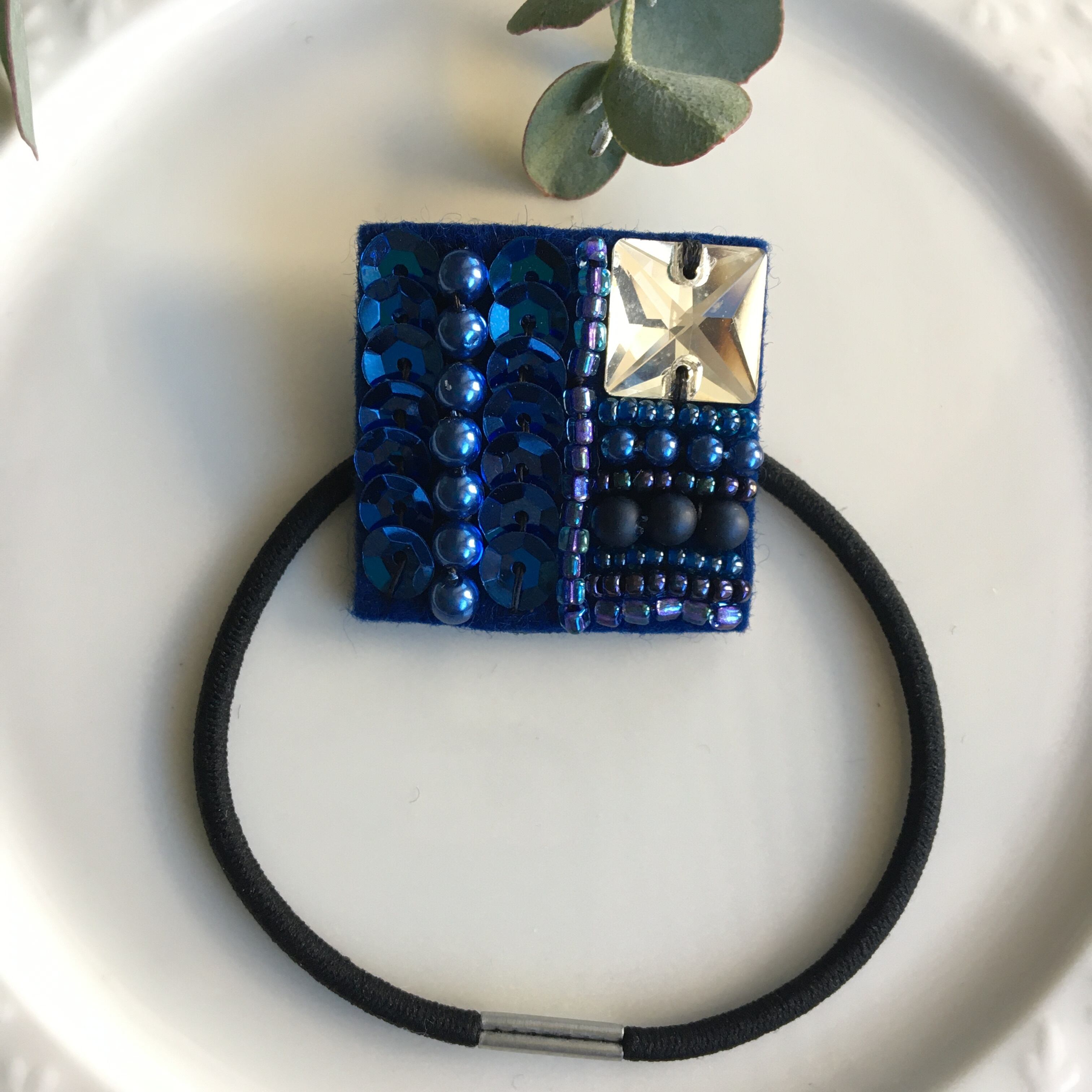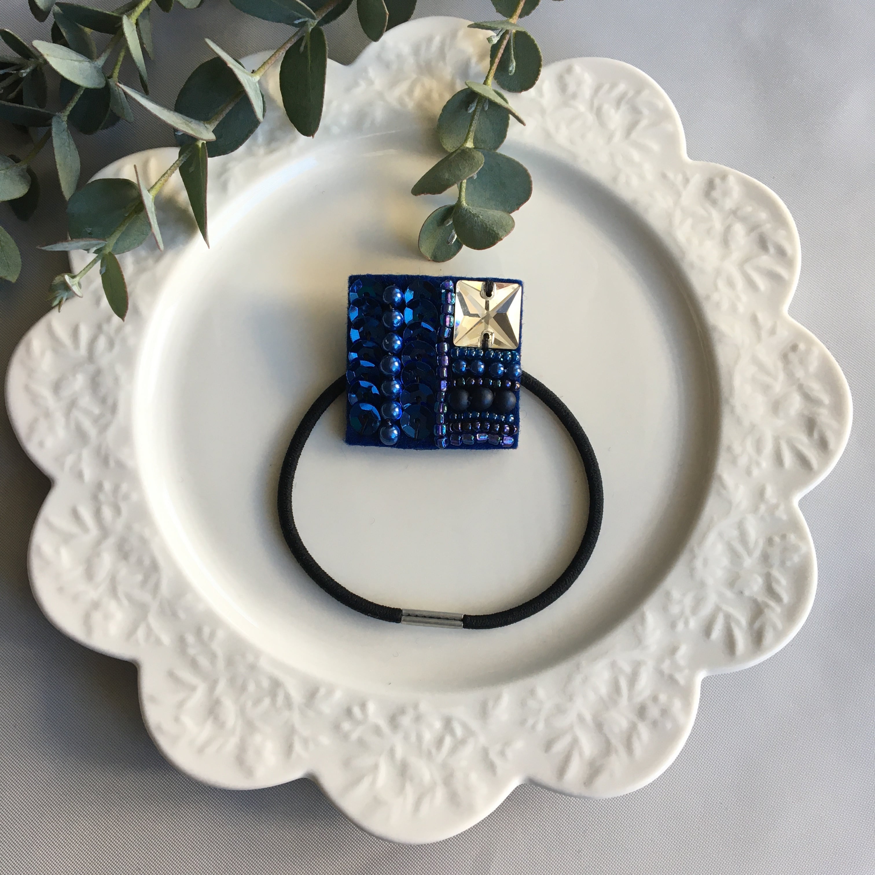スクエアビーズ刺繍ヘアゴム*ロイヤルブルー