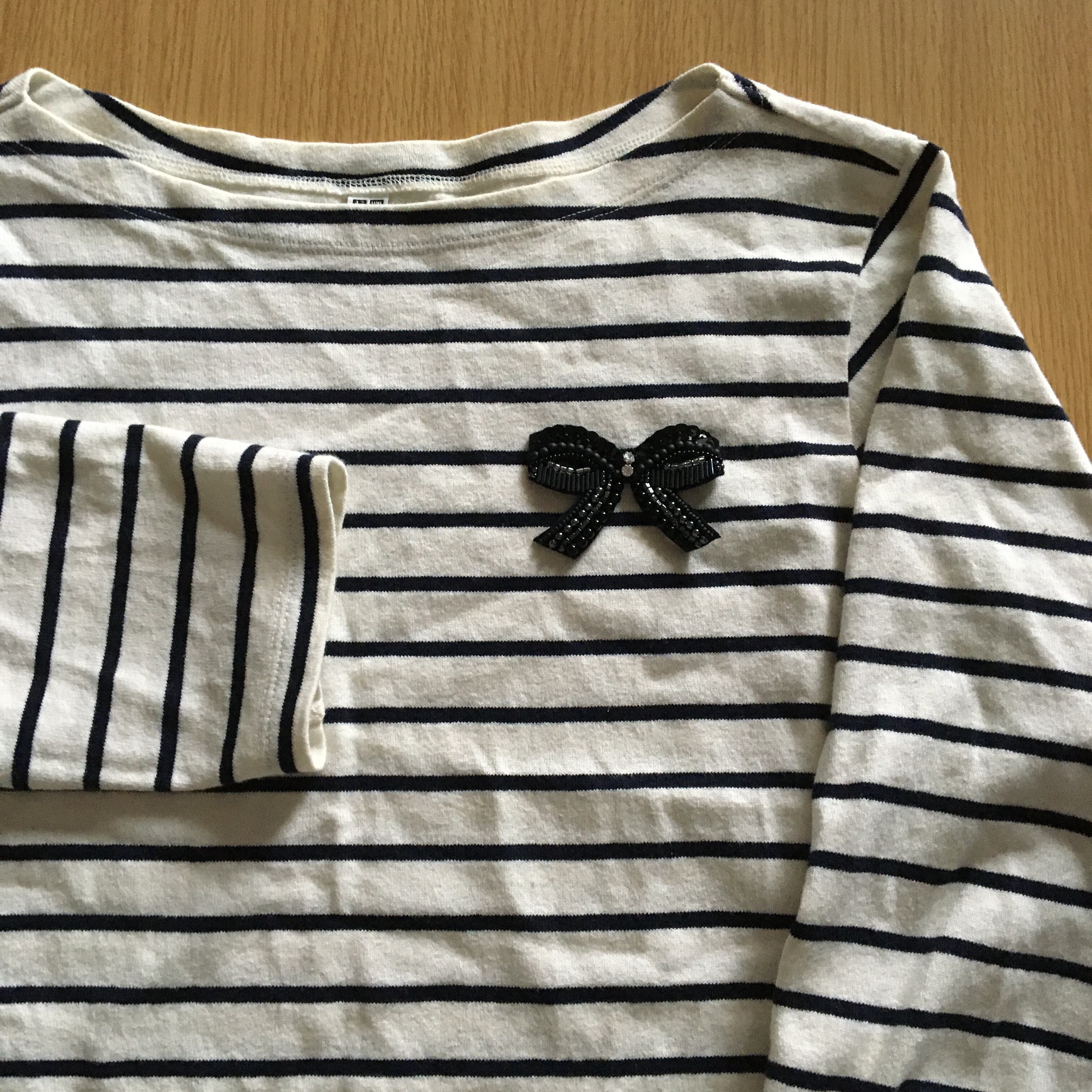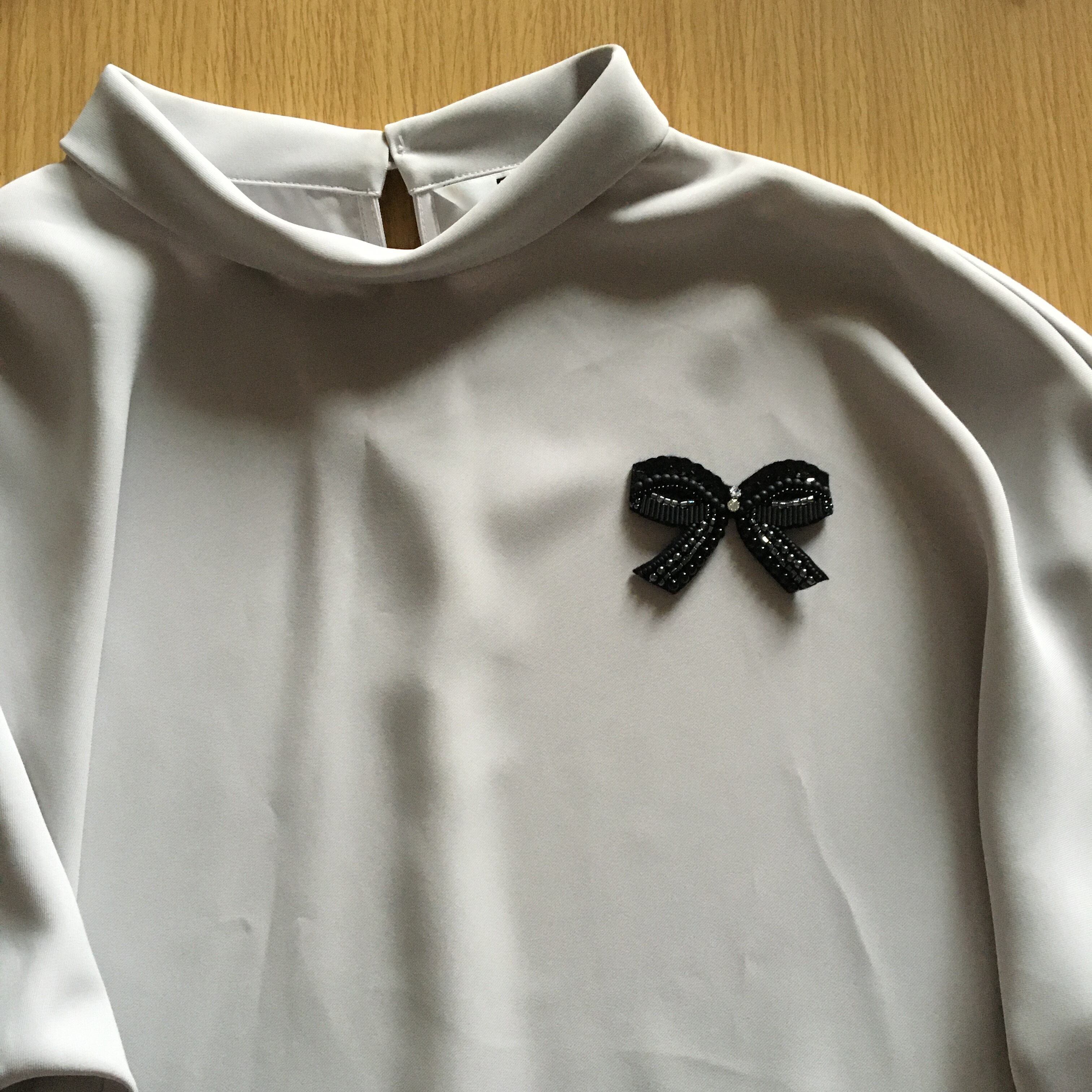 ベージュやスモーキーなピンクのニットなどにワンポイントで黒いブローチを着けると、コーディネートがキリッと引き締まりますよ