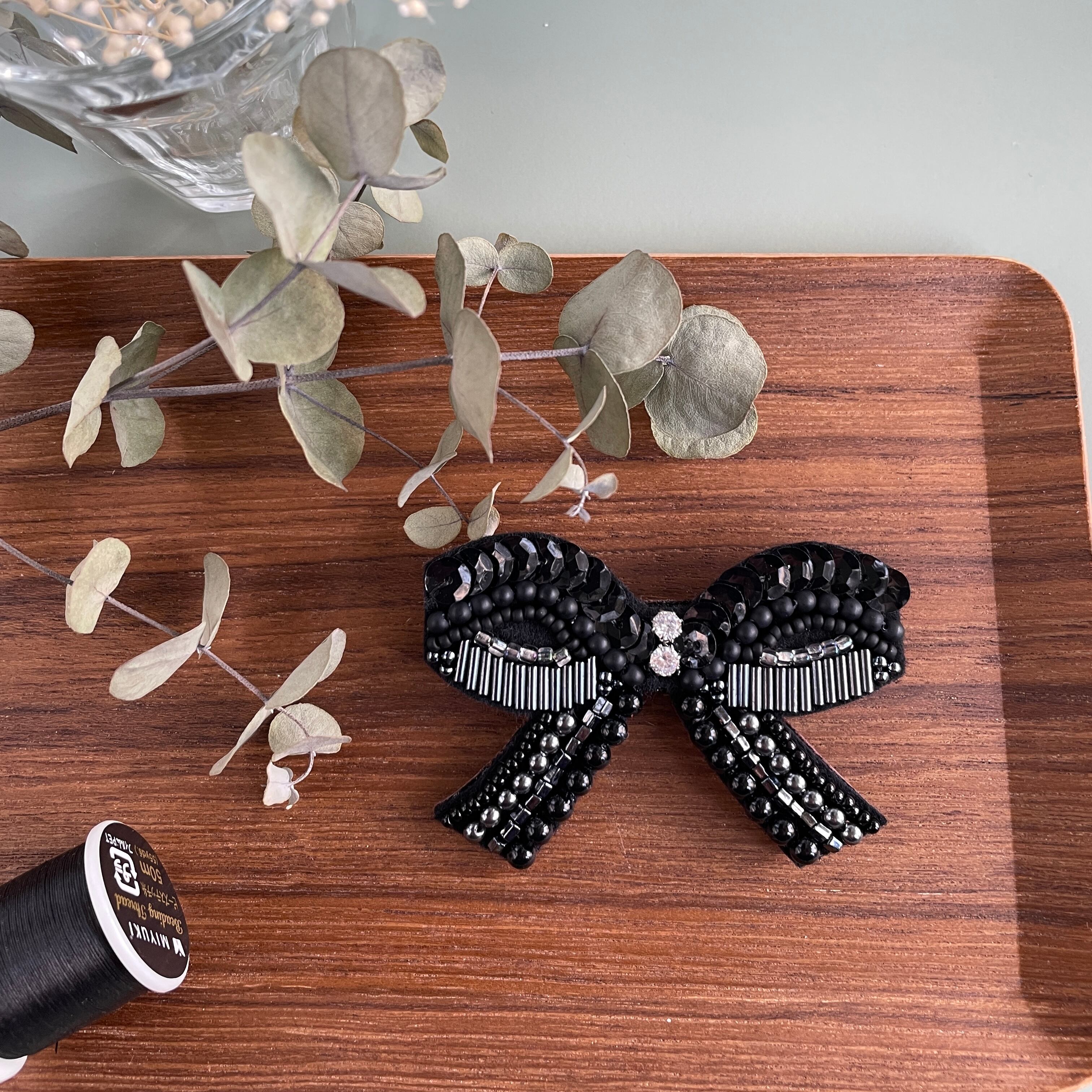 ちょうちょ結びのビーズ刺繍ブローチ*ブラック