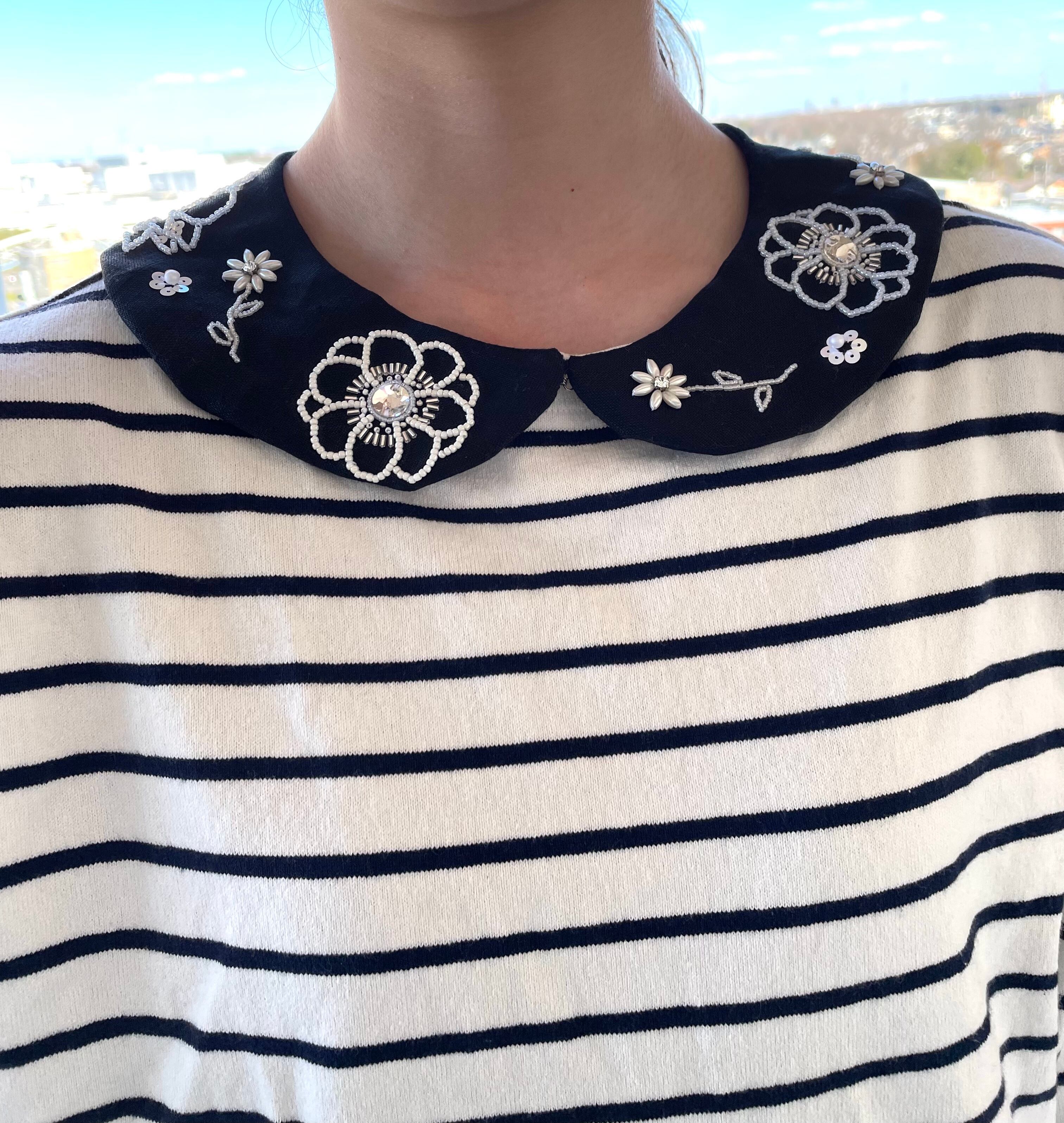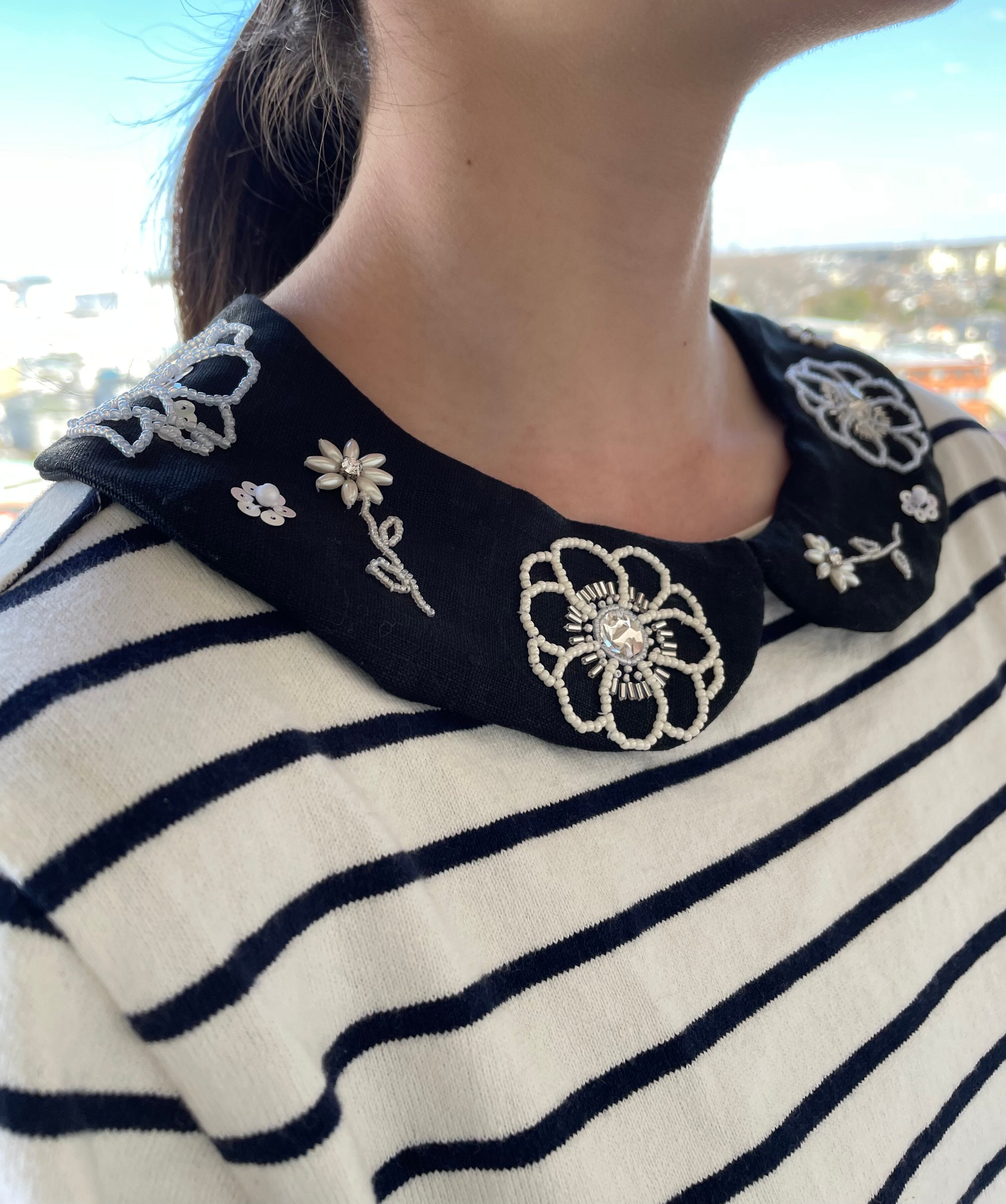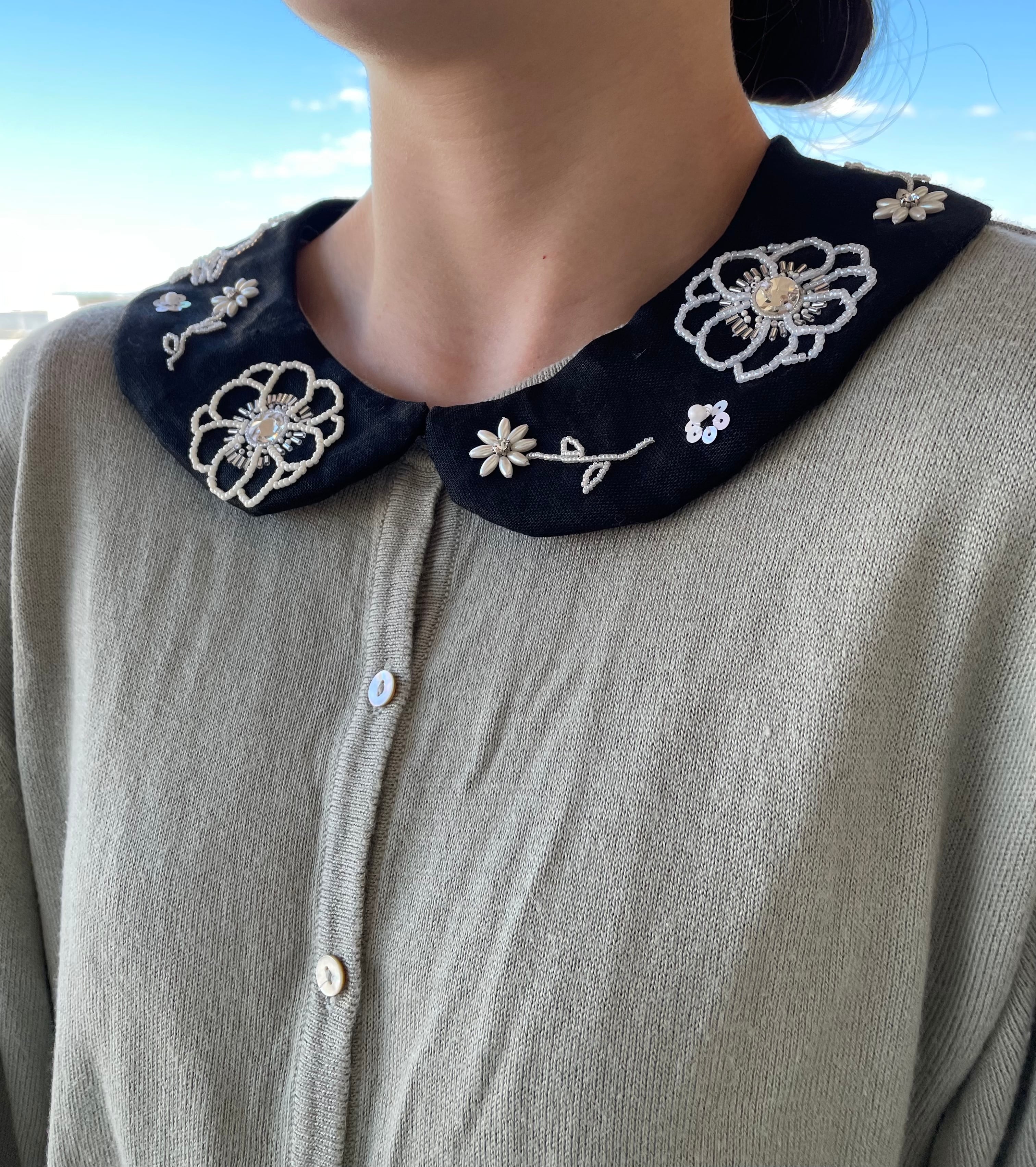 リネンにビーズ刺繡を丁寧に施した、アクセサリー感覚で使えるつけ襟です