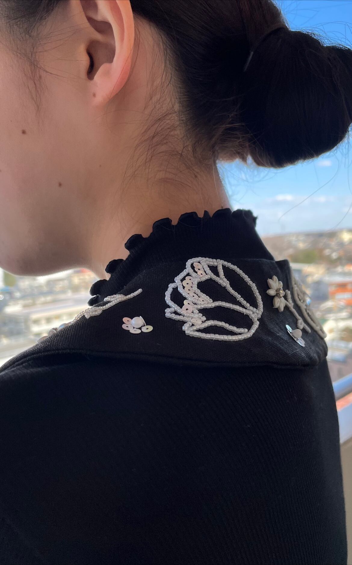ビーズ刺繍つけ襟アネモネ*ブラック