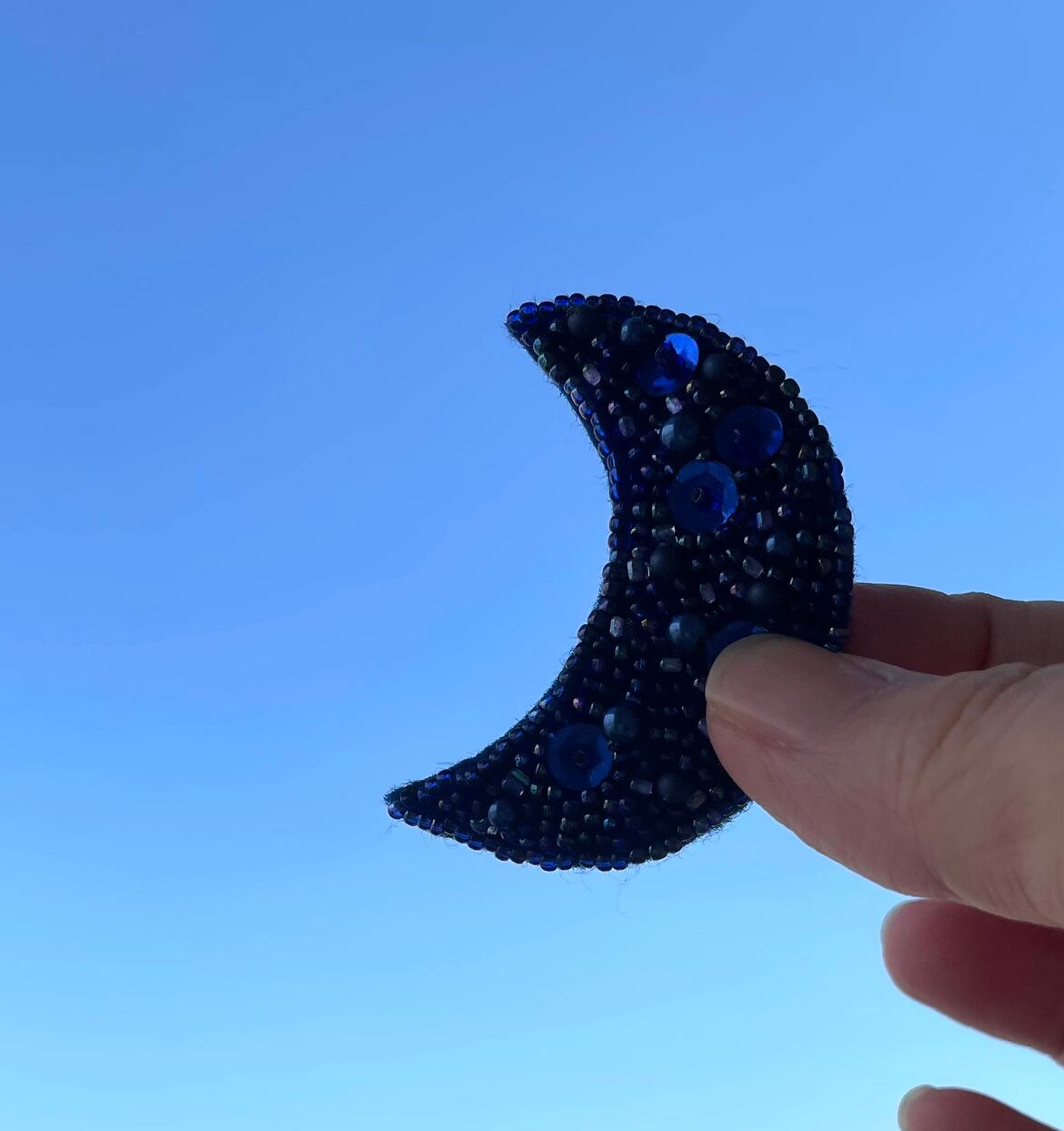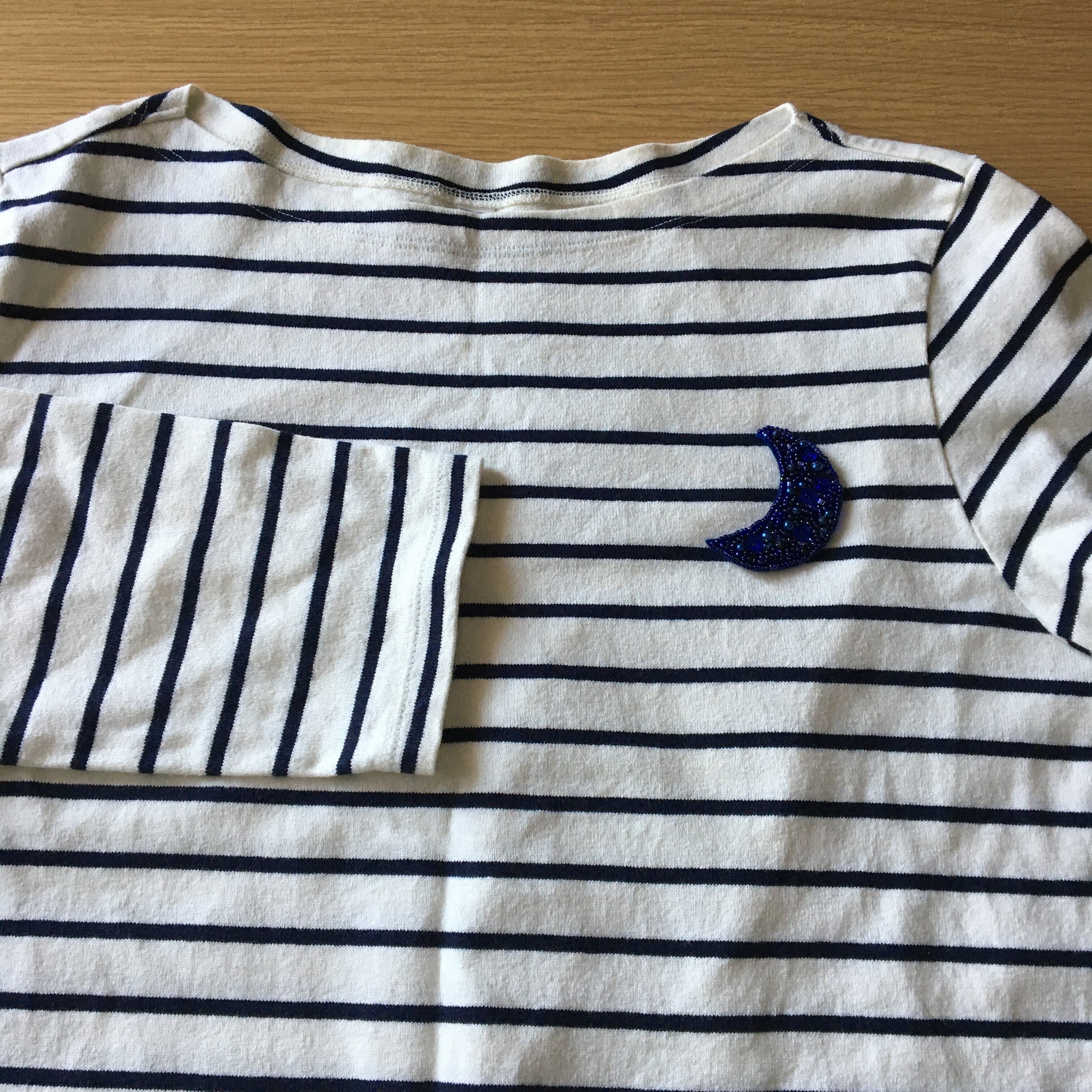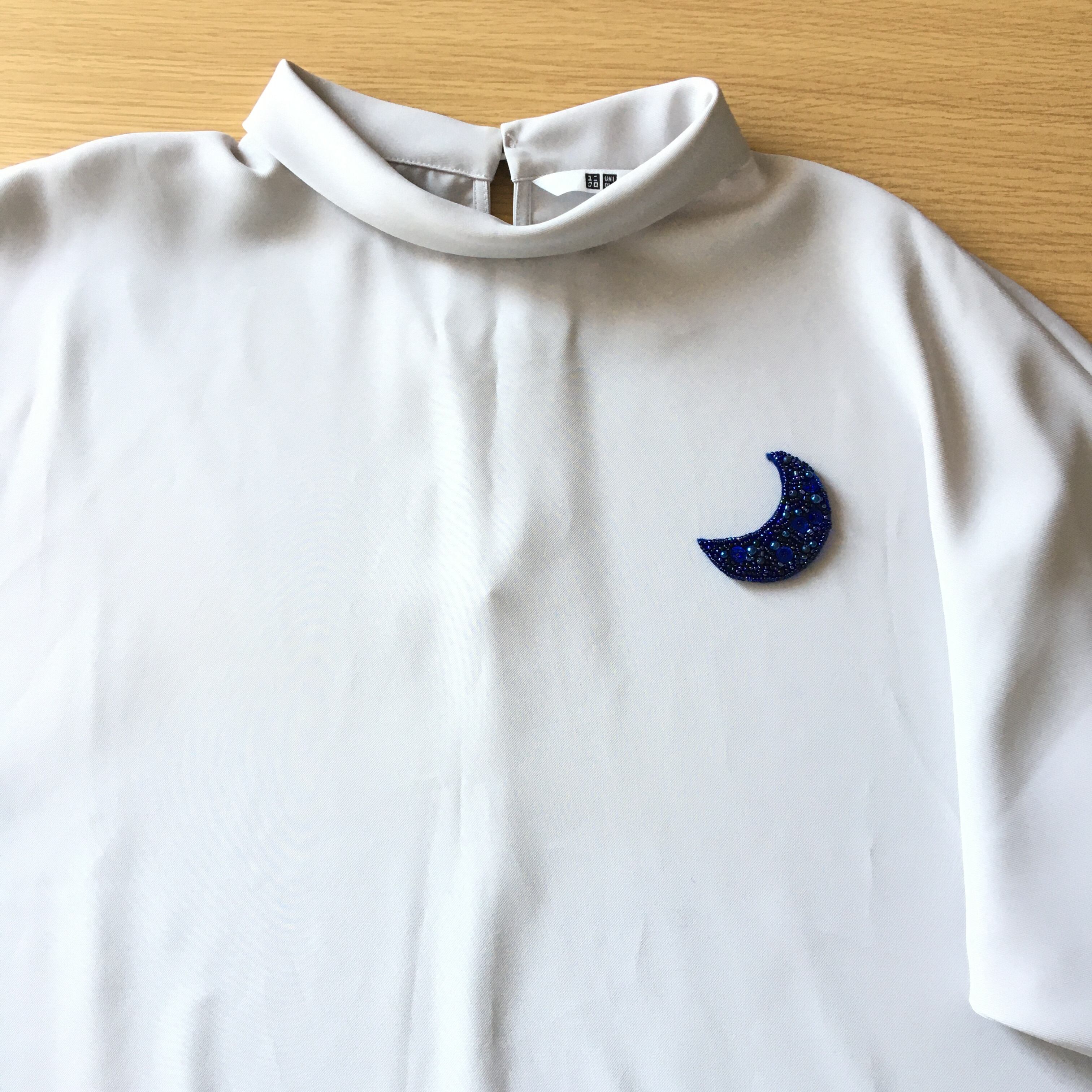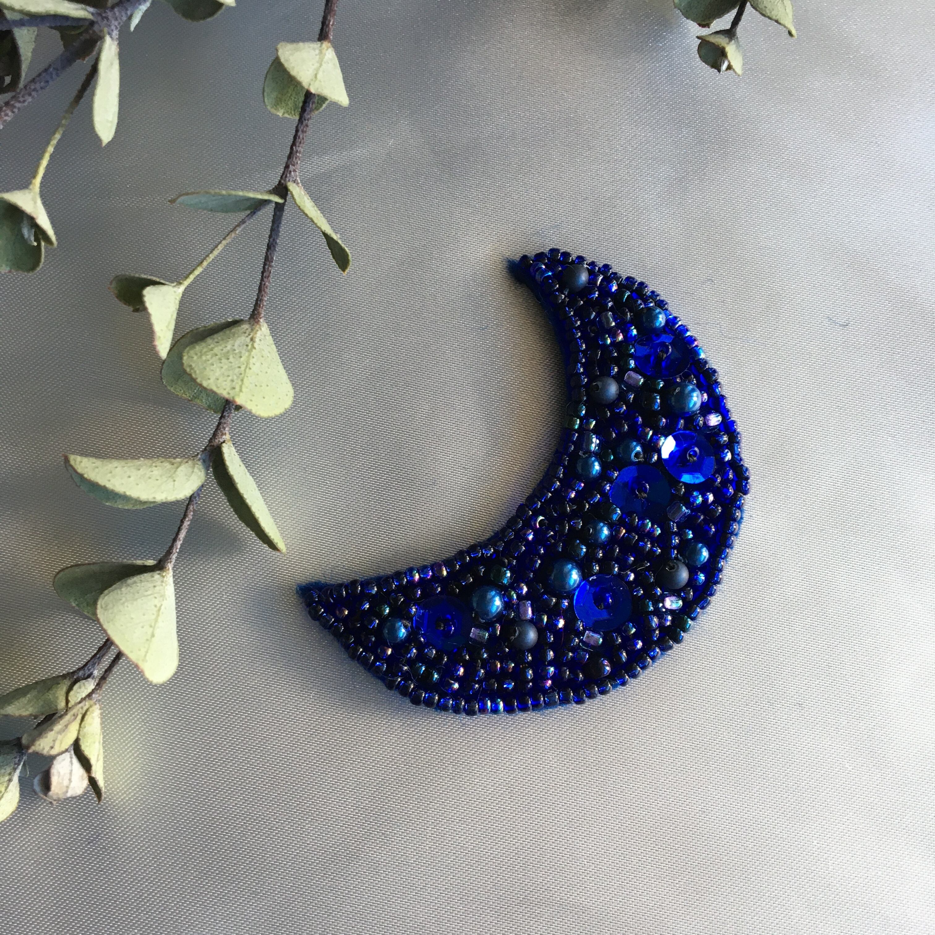 ビーズ刺繍ブローチmoon*ロイヤルブルー