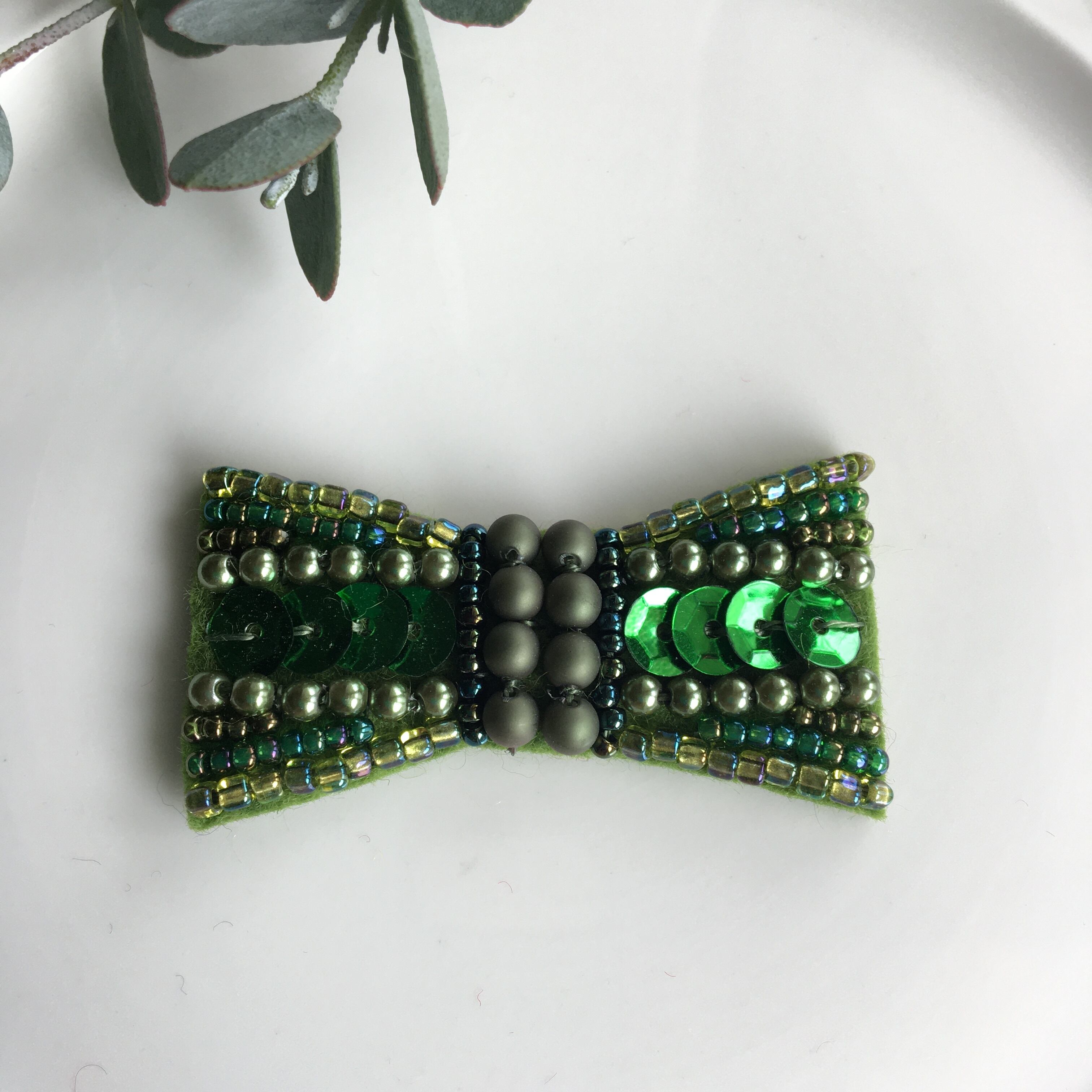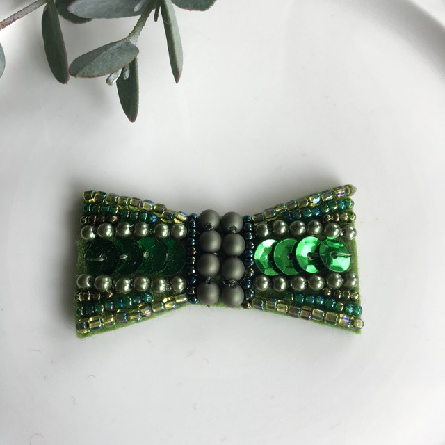 小さなリボンのビーズ刺繍ブローチ*グリーン