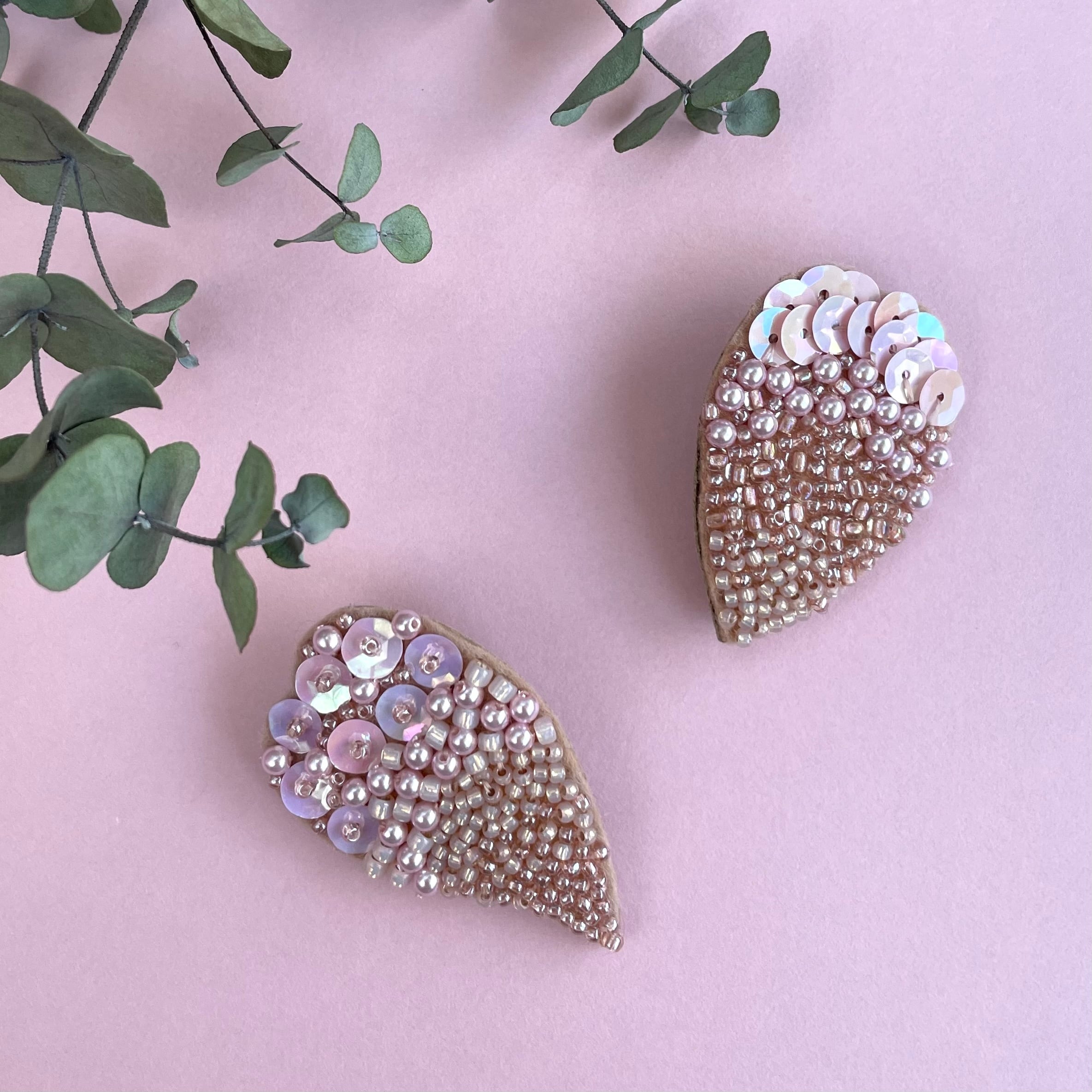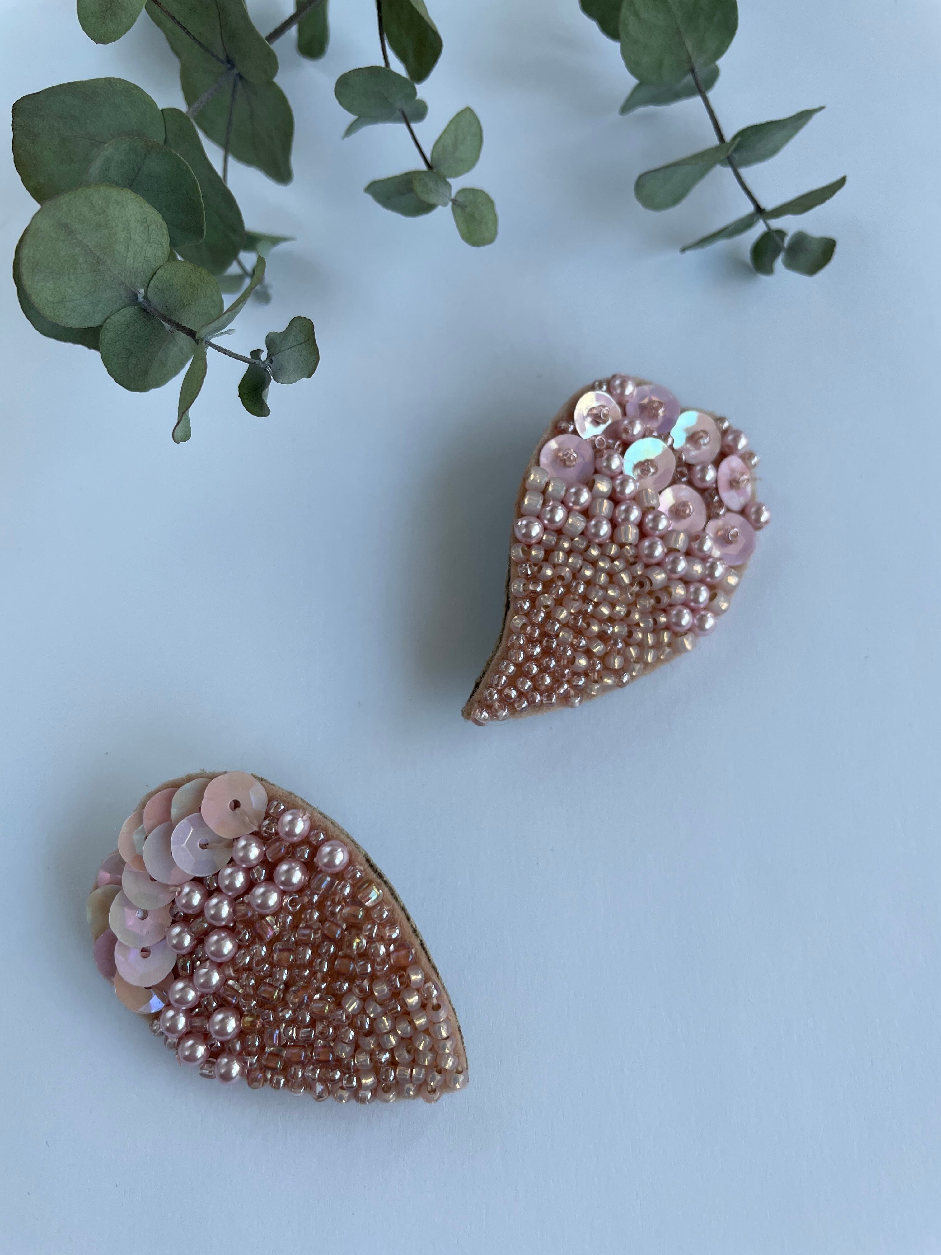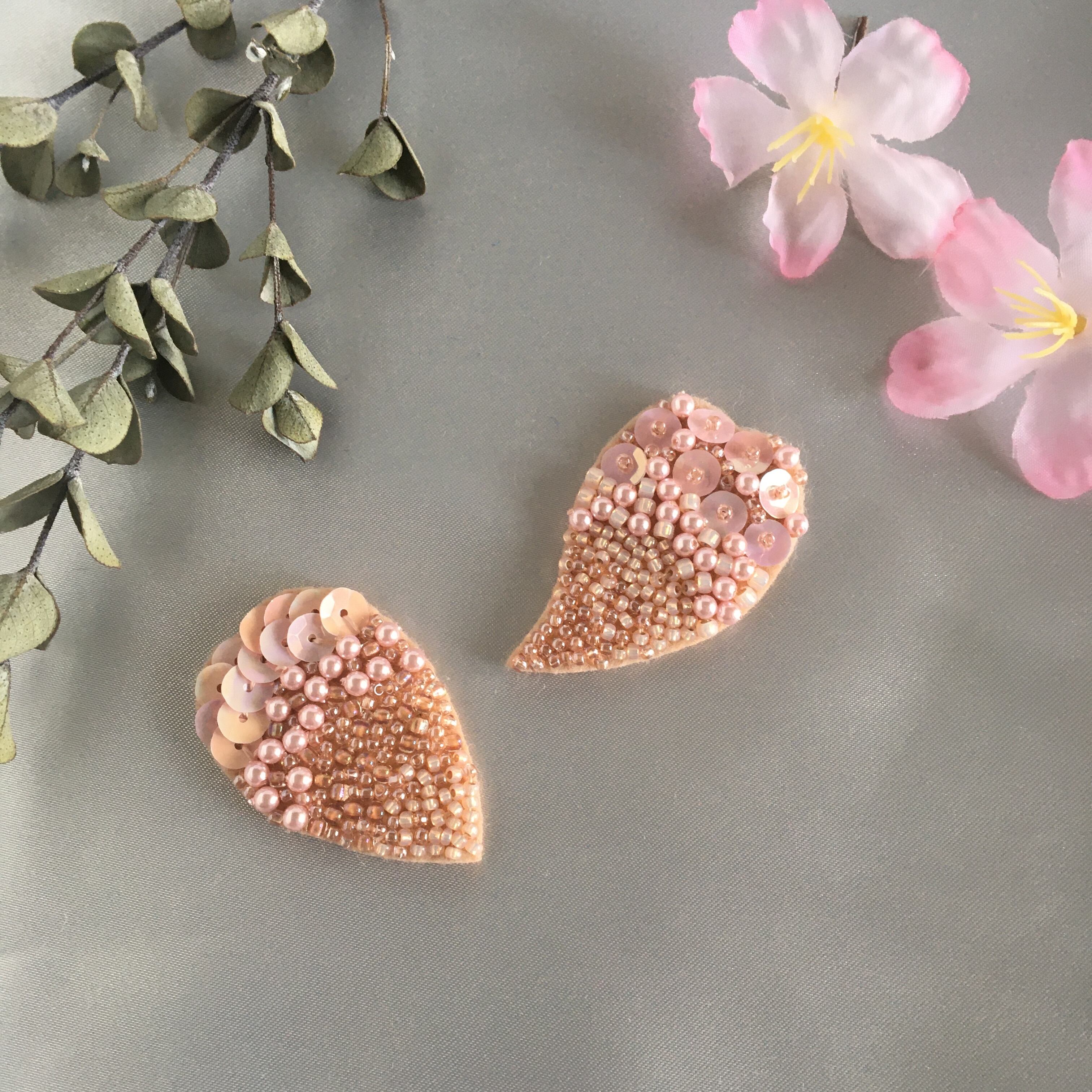やさしい桜色のスパンコールやパールやガラスビーズのグラデーションが美しいブローチです