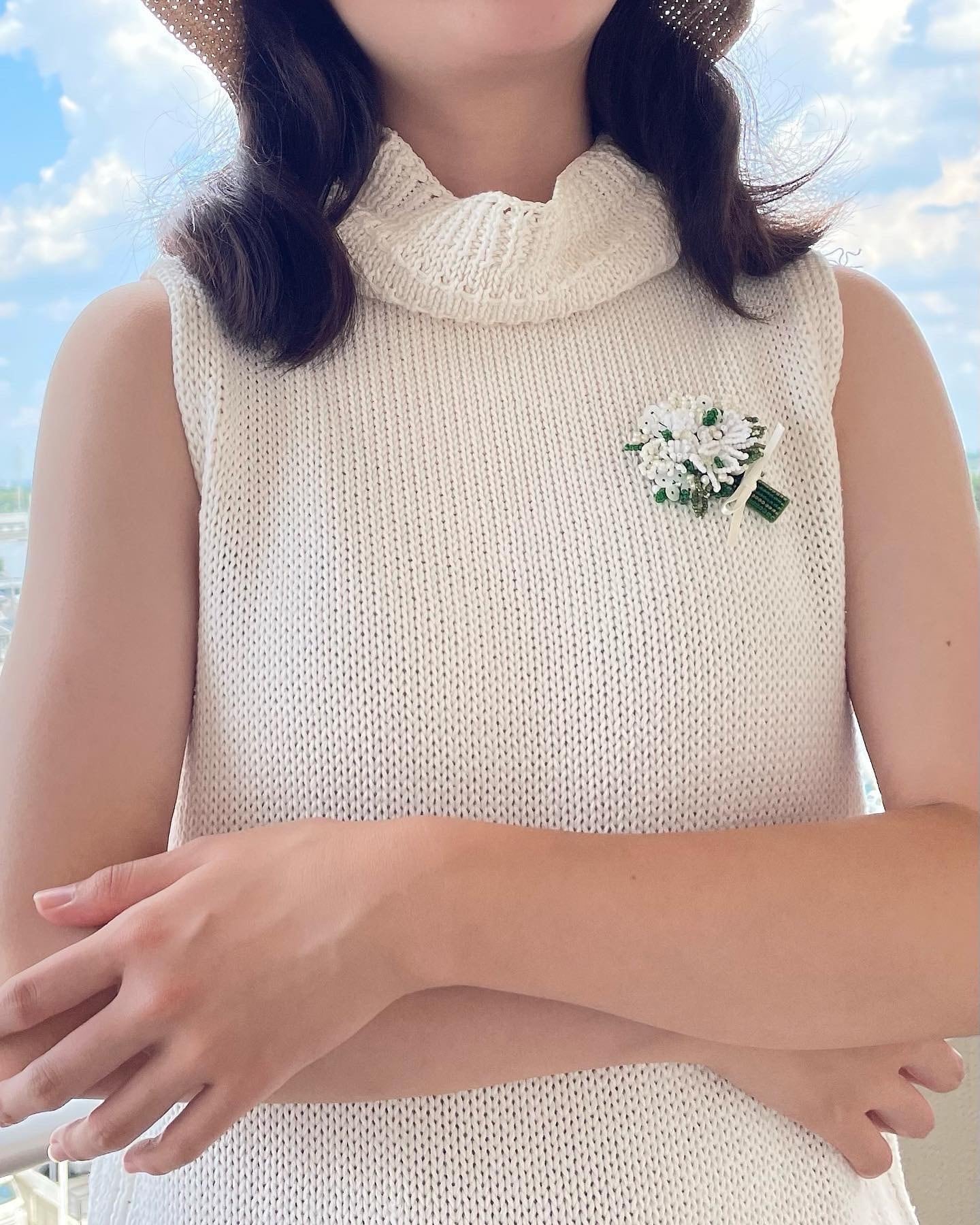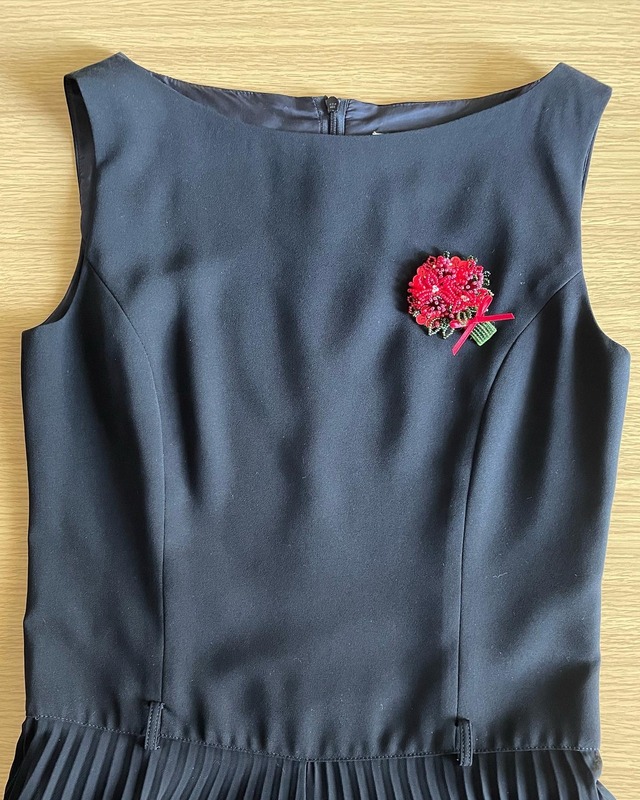 黒いワンピースや紺のスーツに着けると華やかに