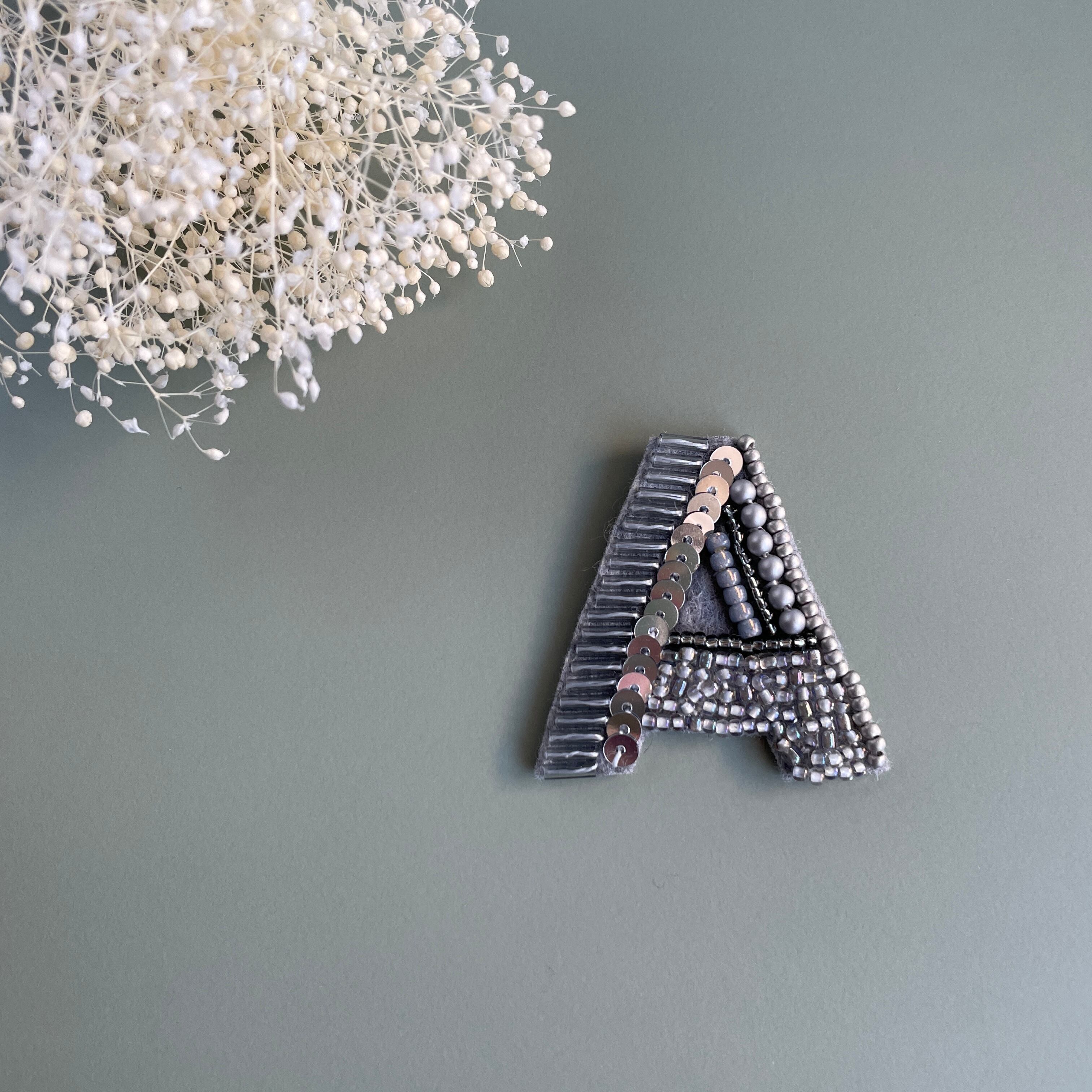 ユニセックスで使っていただける、シックでカッコいいイニシャルブローチです