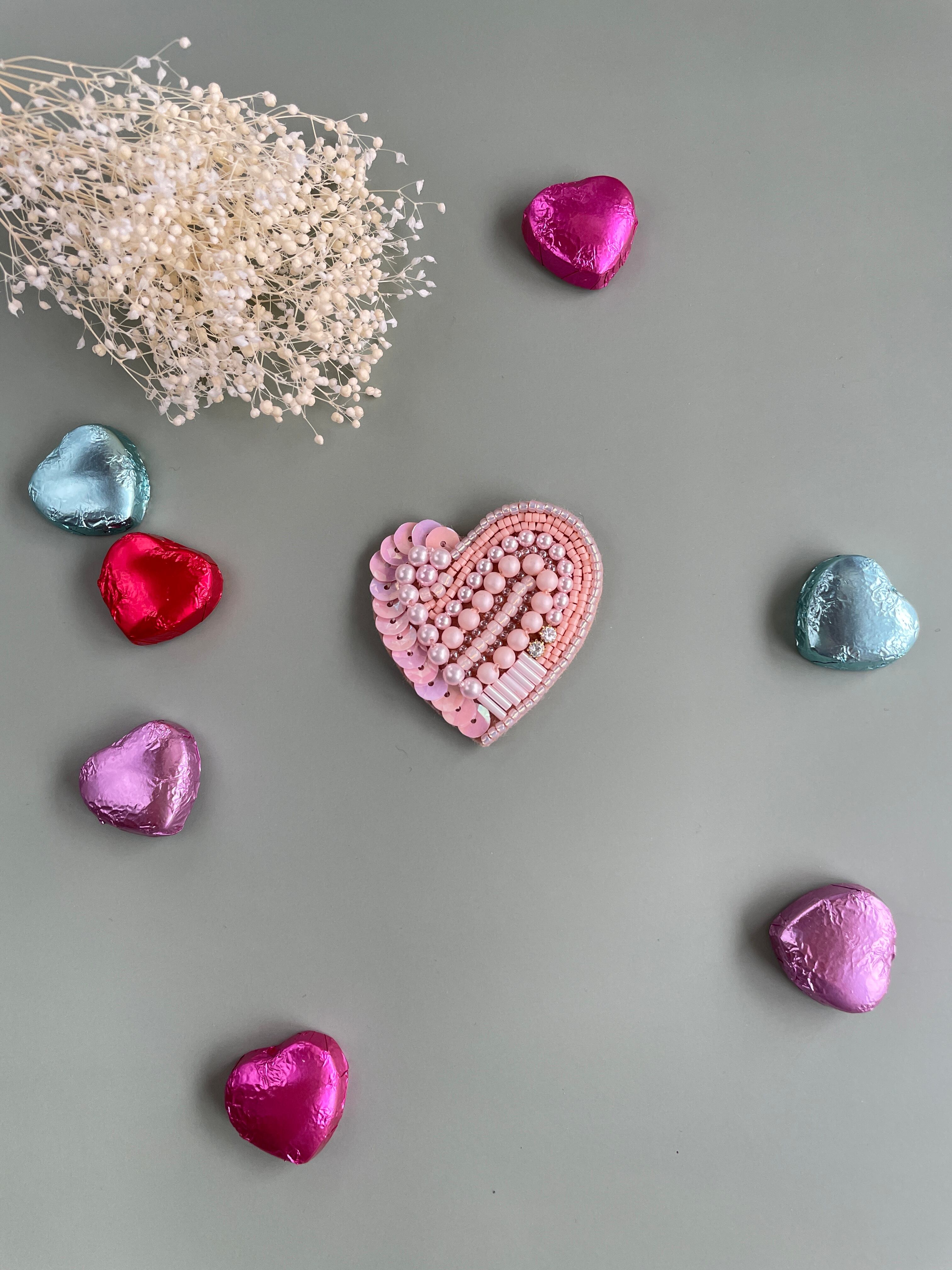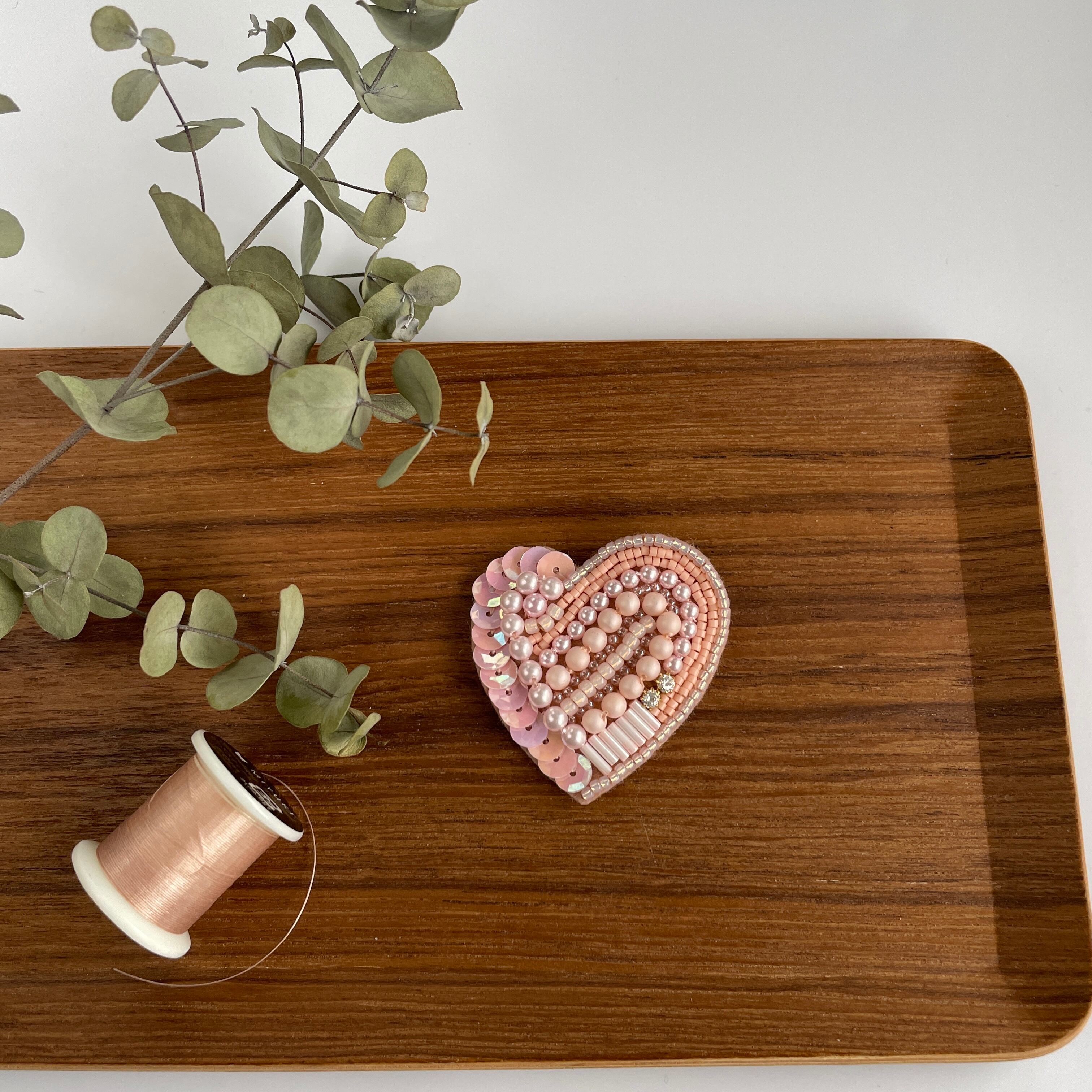 ハートのビーズ刺繍ブローチ*ベビーピンク
