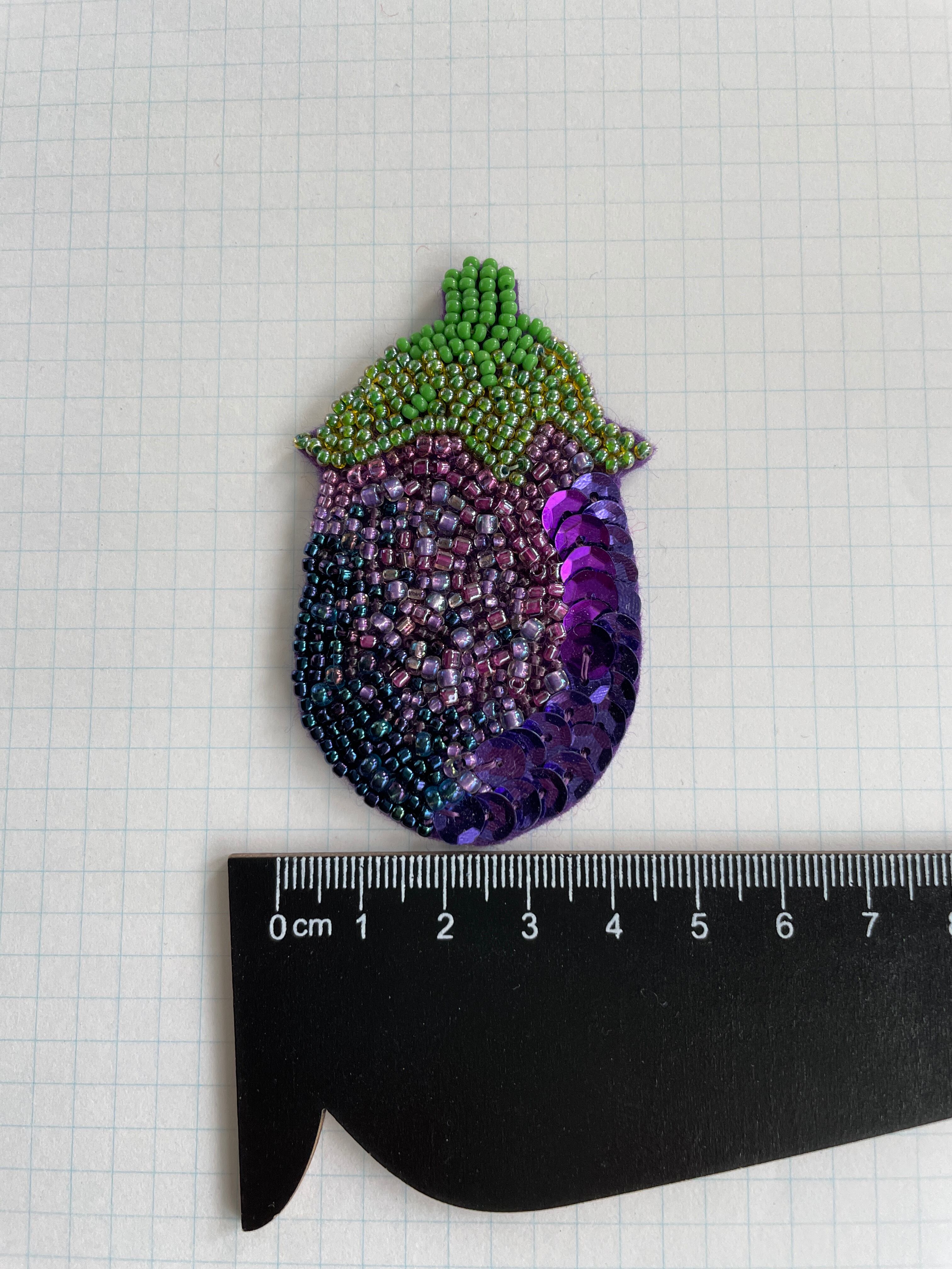 なすのビーズ刺繍ブローチ