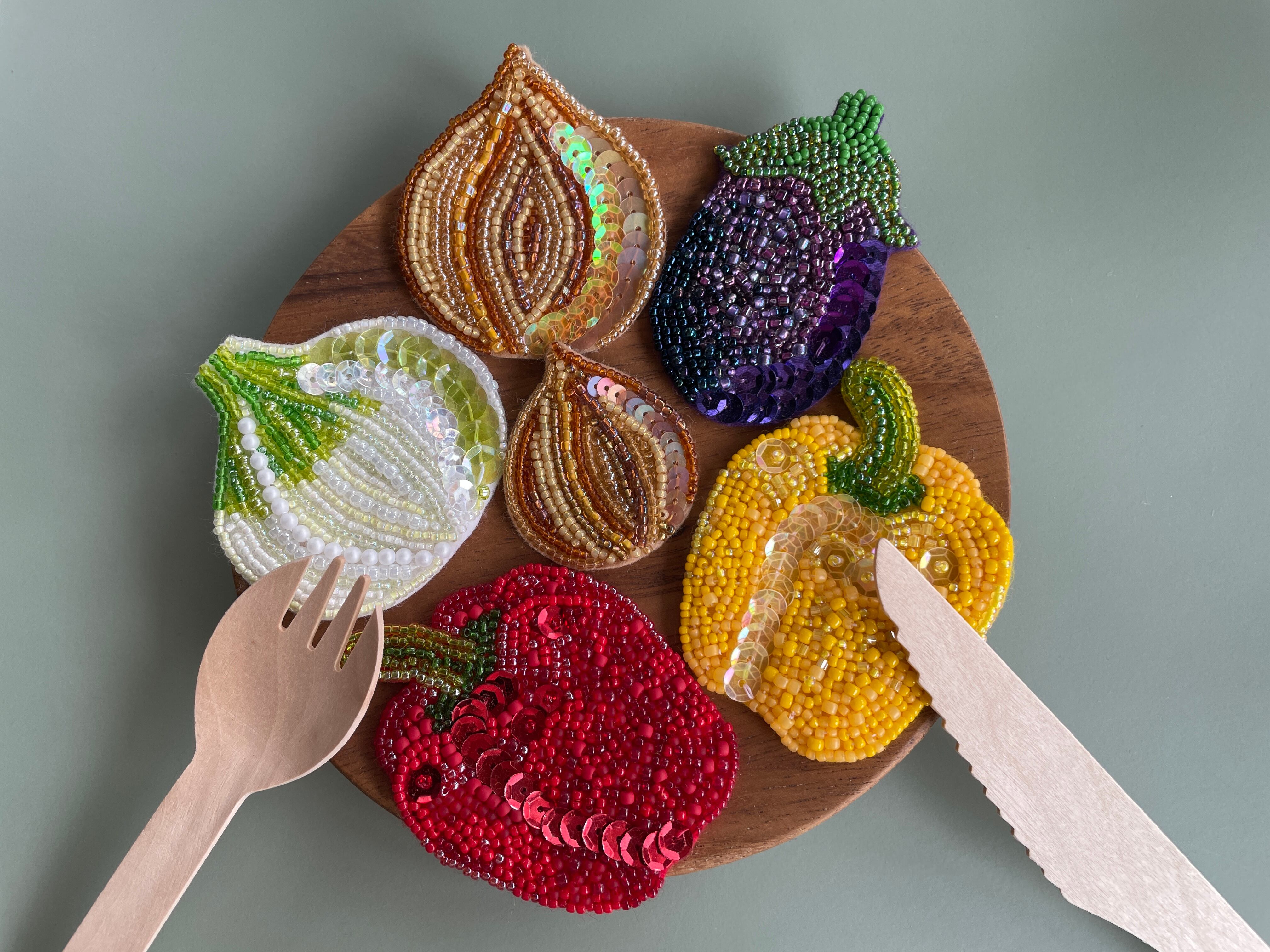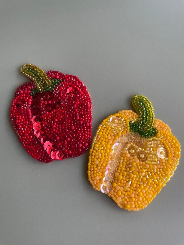 黄色いビーズのグラデーションが美しいパプリカのブローチで、今年の夏はいつもより個性的なおしゃれに挑戦してみませんか?