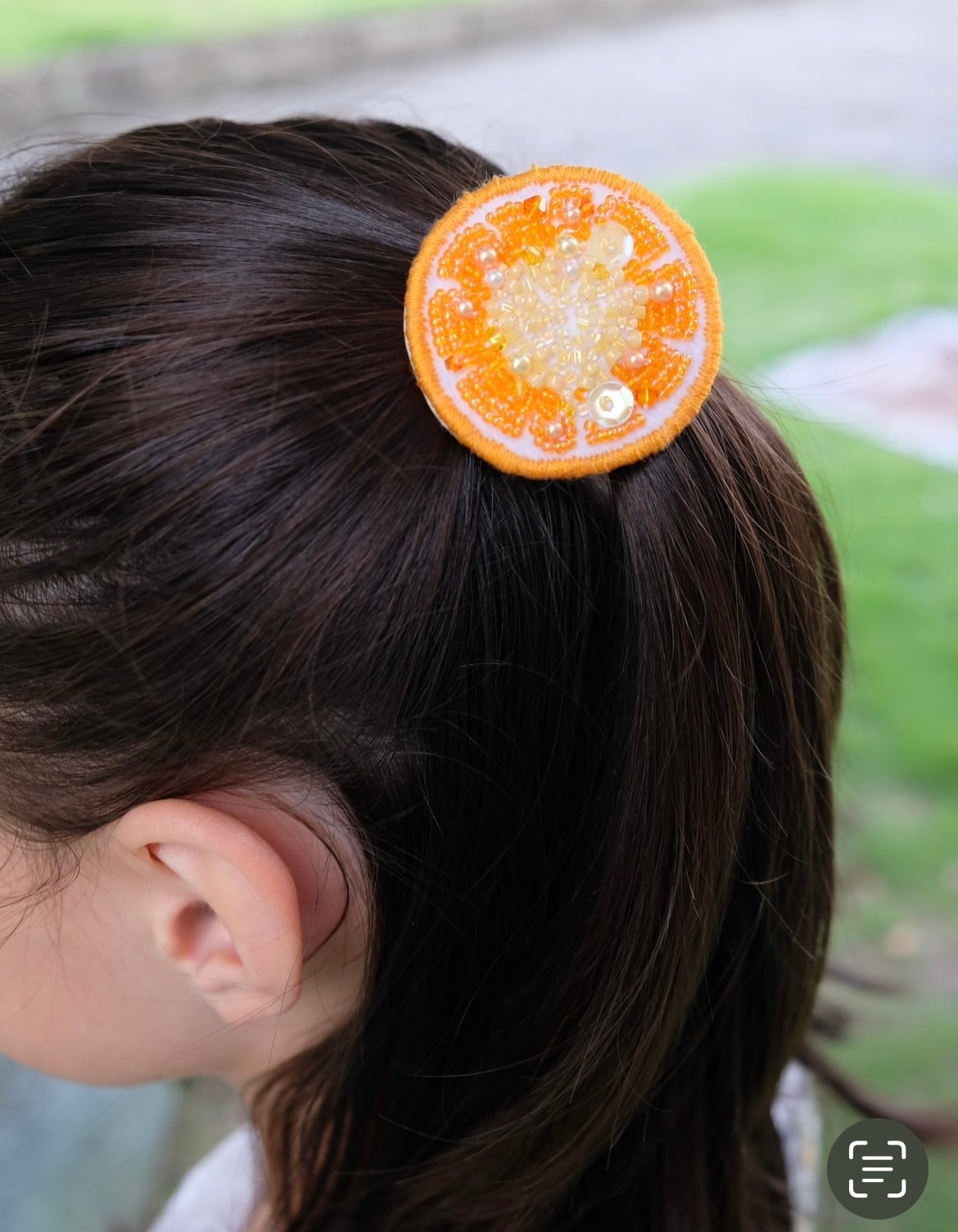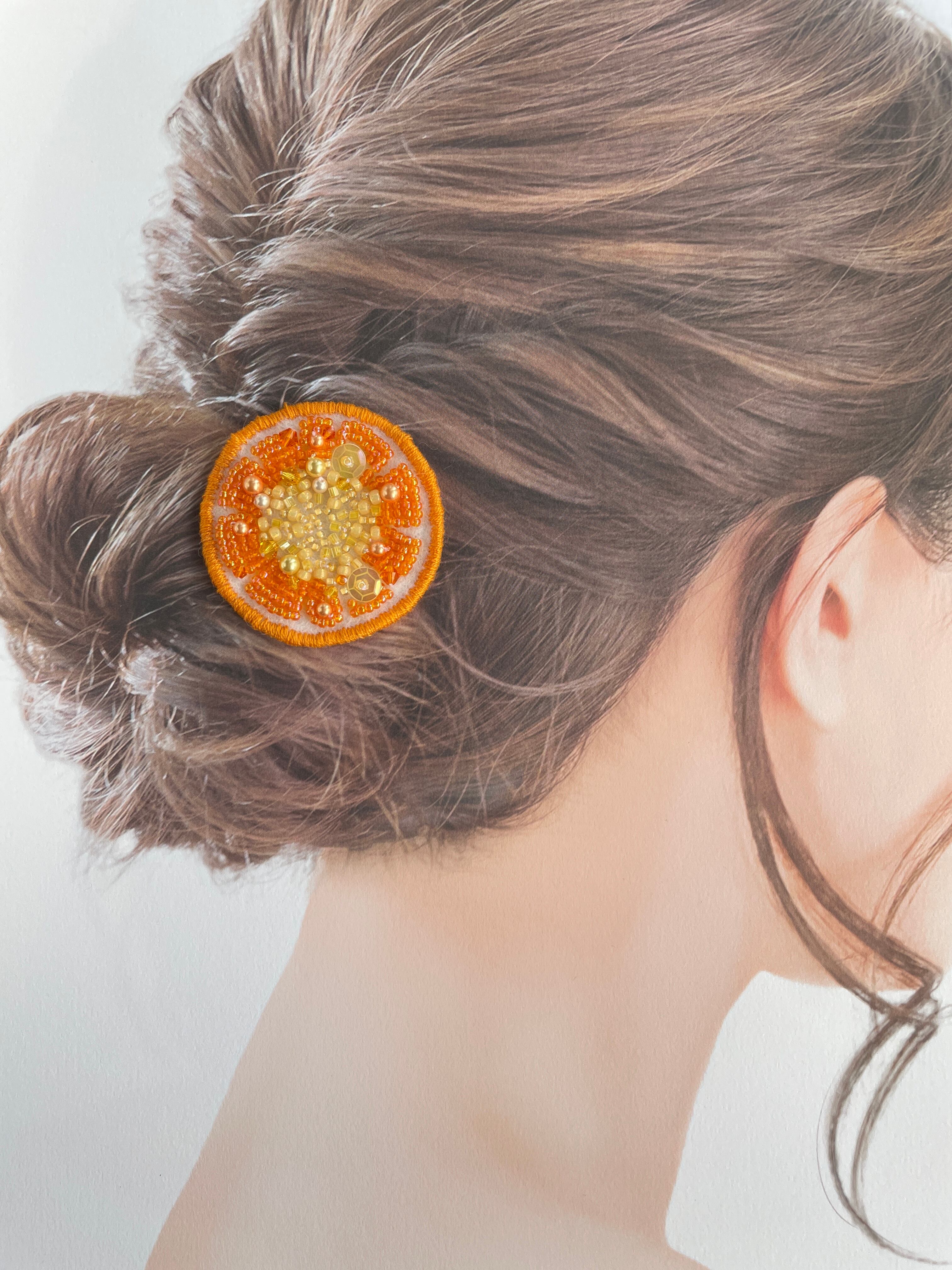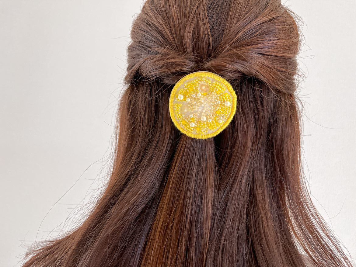 みずみずしいスライスオレンジをビーズ刺繍で表現してみました