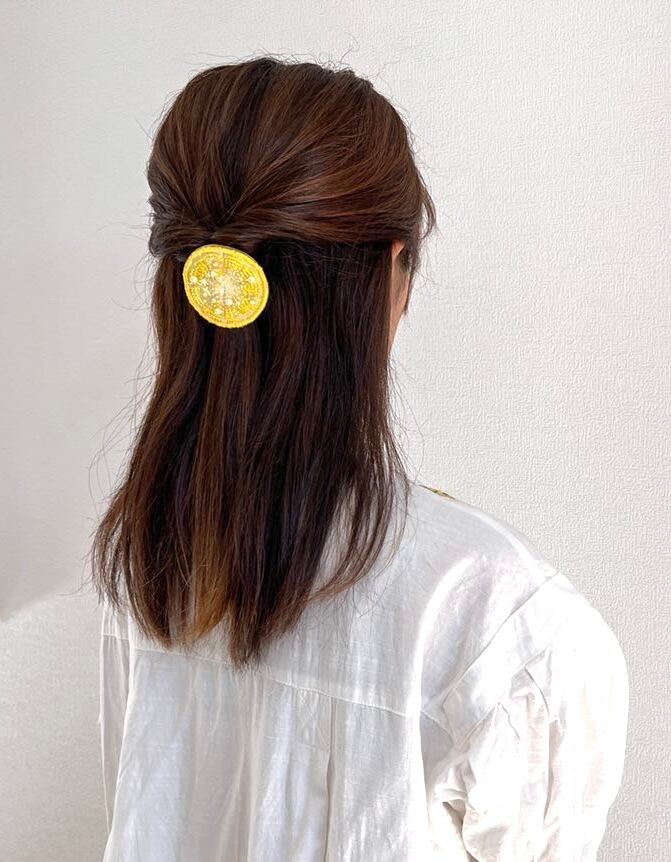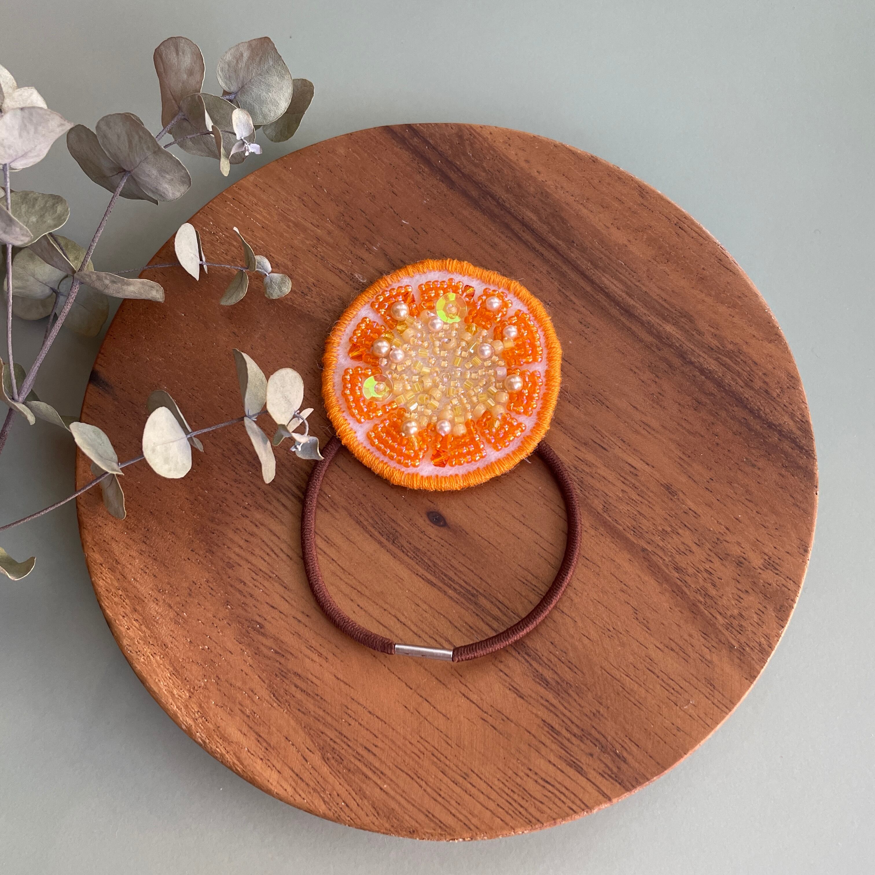 オレンジのビーズのグラデーションが美しいスライスオレンジのヘアゴムで、いつもより個性的なおしゃれに挑戦してみませんか?