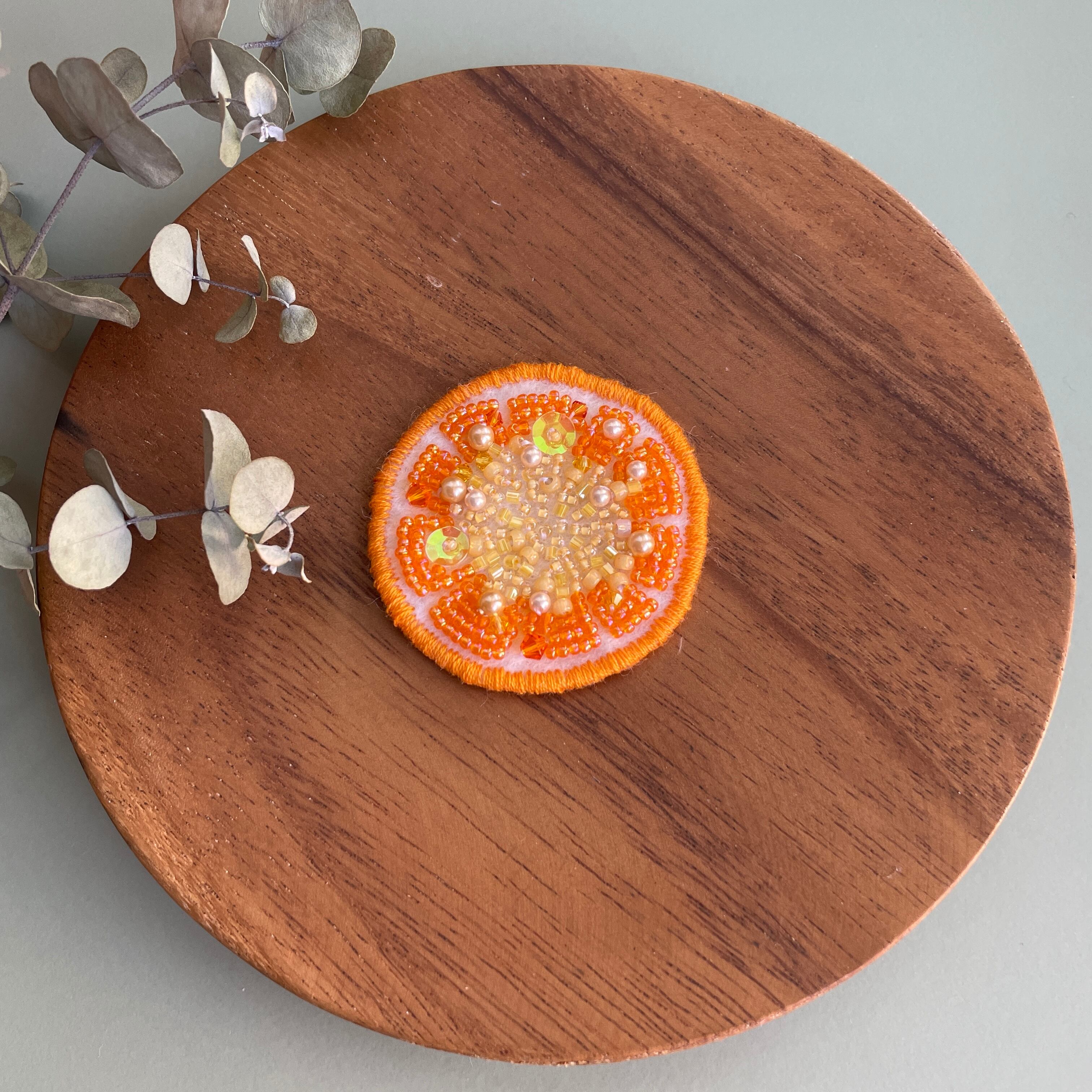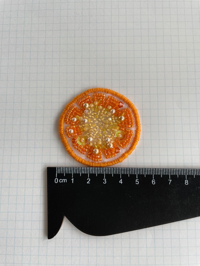スライスオレンジをビーズ刺繍で表現してみました