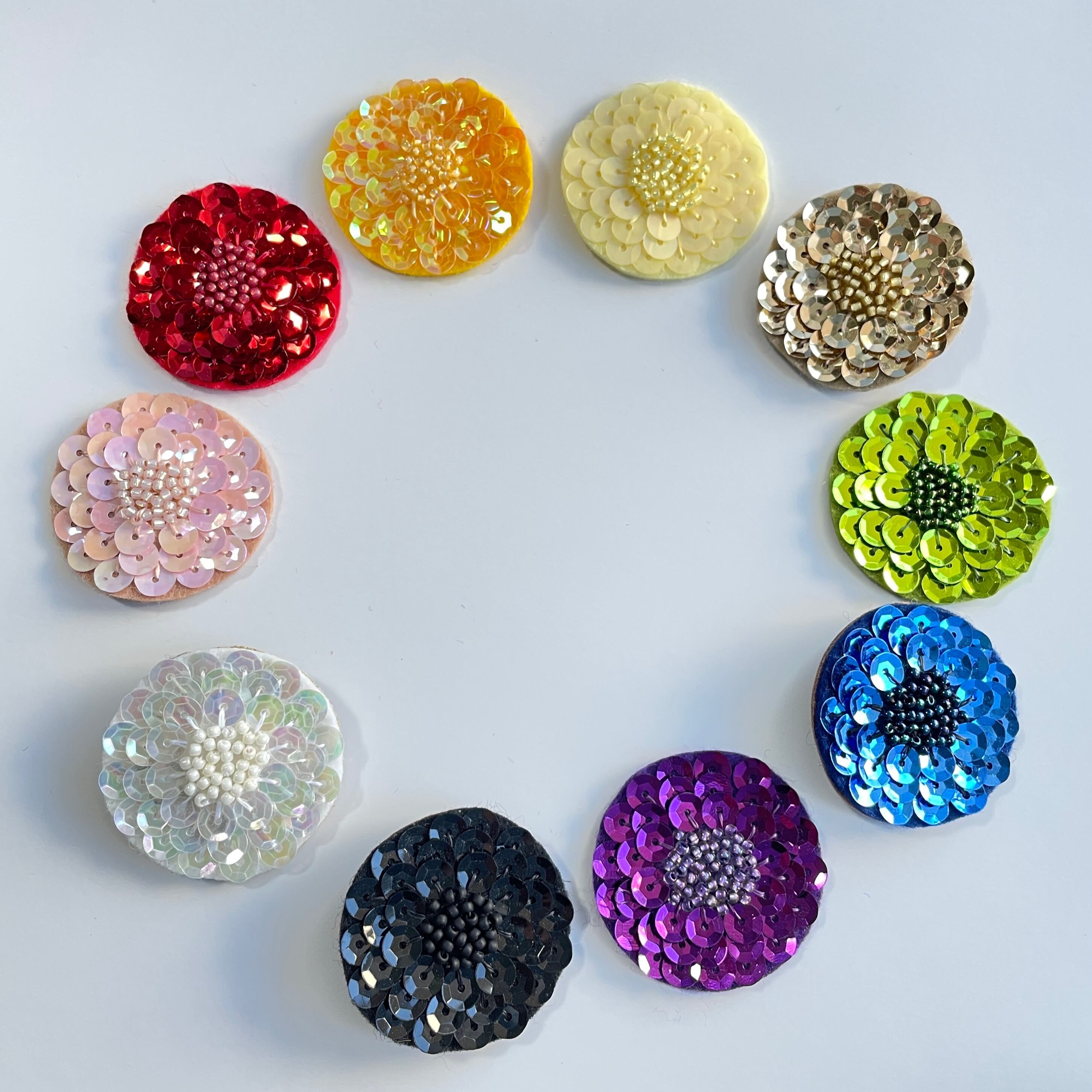 スパンコールを多く使っているため完成も早く、ビーズ刺繍が初めての方にもおすすめです