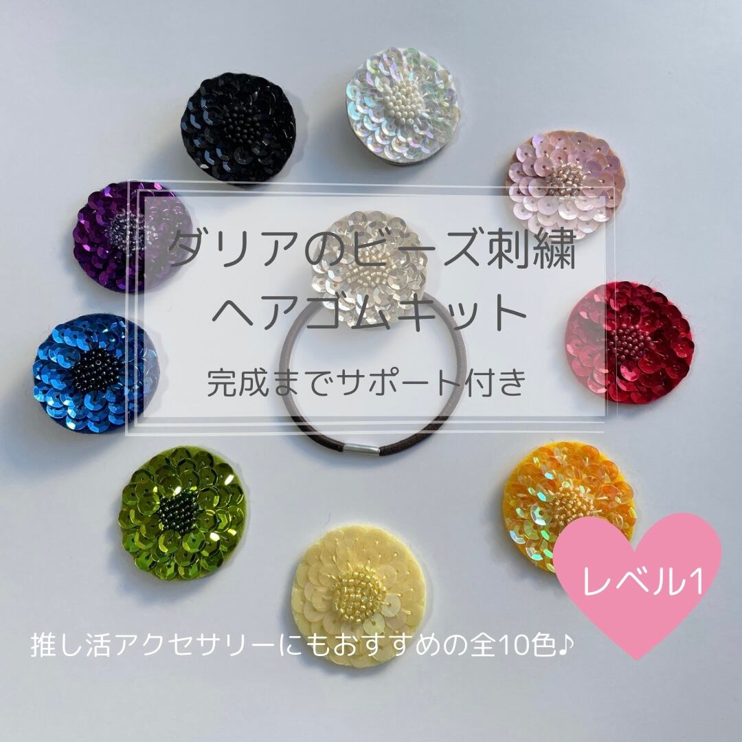 ダリアのビーズ刺繡ヘアゴムキット*推し活アクセサリーにもおすすめ♡
