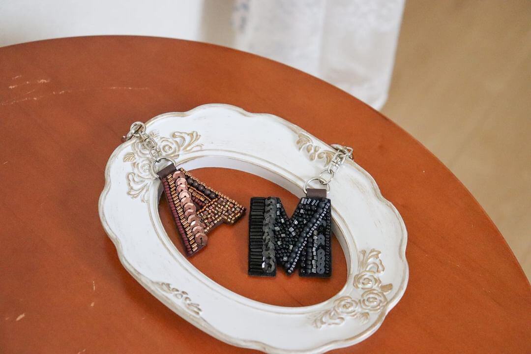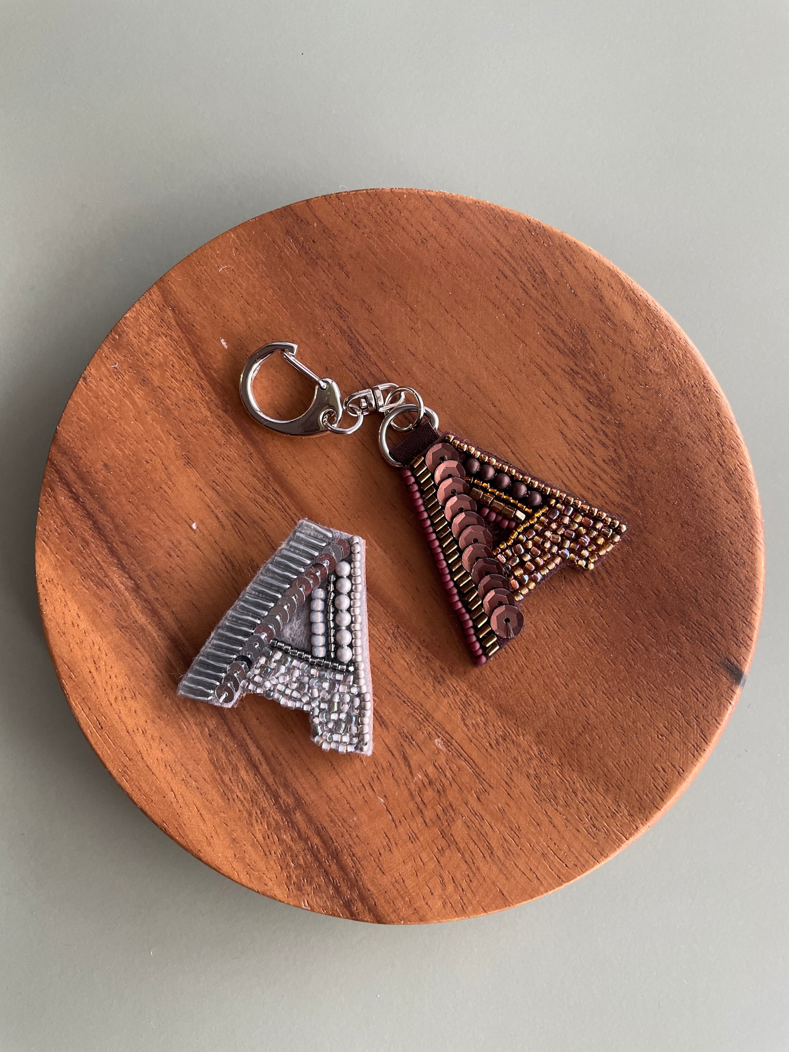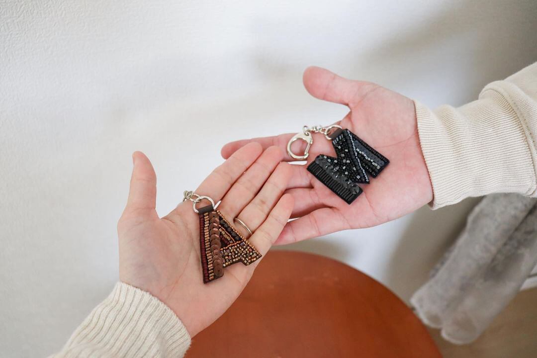 ペアイニシャルビーズ刺繍キーホルダー〈送料無料〉*母の日・父の日にも