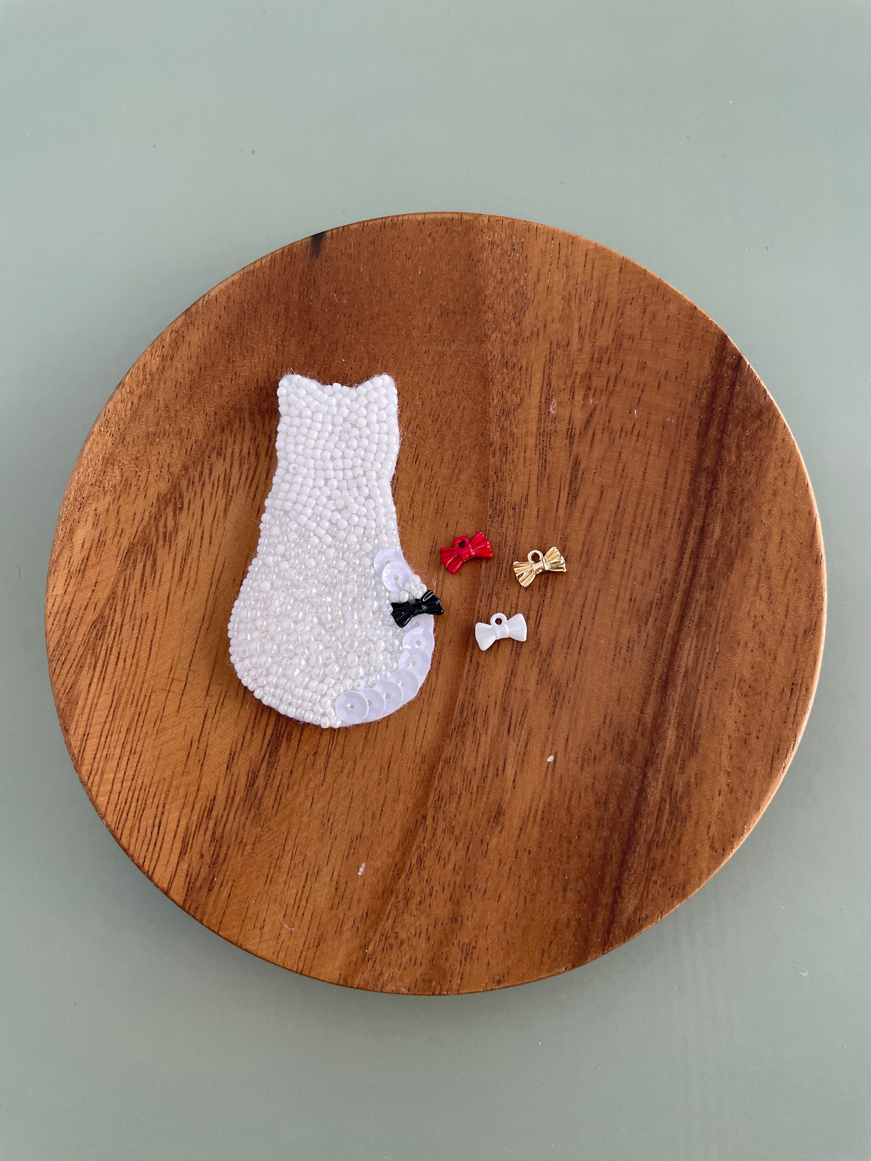 リボンが選べる黒猫のビーズ刺繡ブローチキット*保護猫活動支援作品