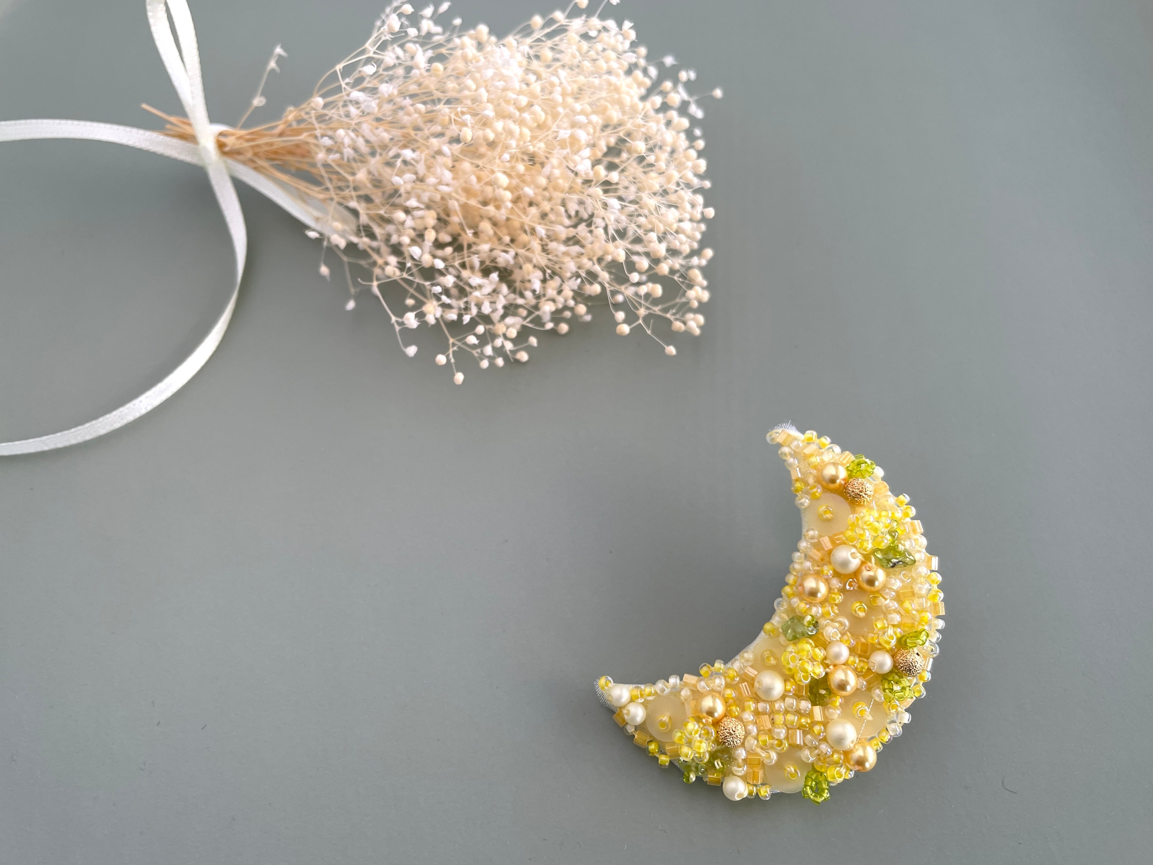 大好きなミモザと月を掛け合わせたらとてもさわやかなブローチができました