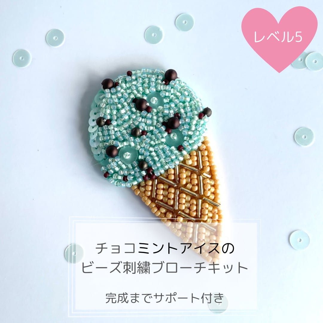 チョコミントアイスのビーズ刺繍ブローチキット
