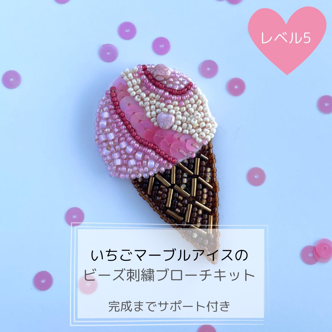 いちごマーブルアイスのビーズ刺繍ブローチキット