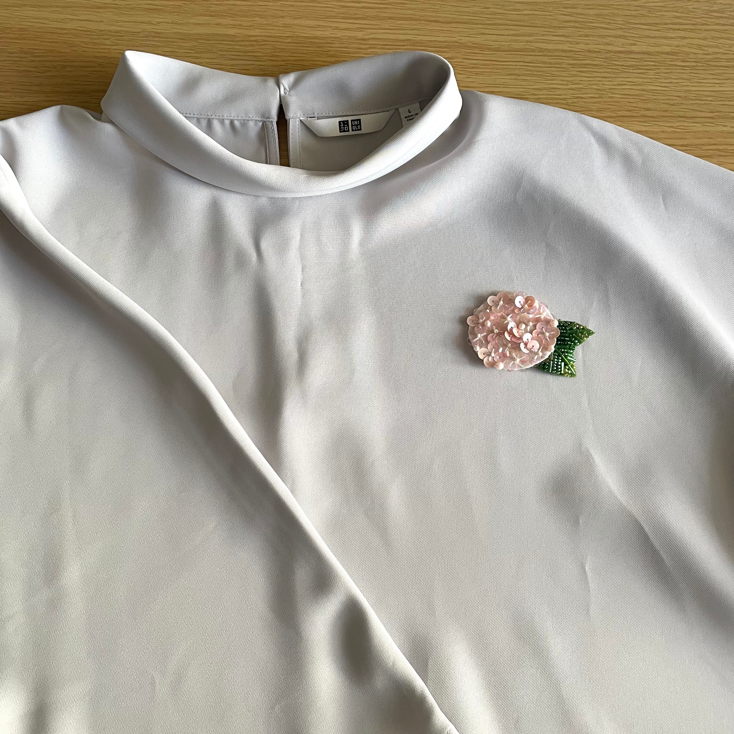 雨上がりにキラキラと輝く紫陽花をブローチにしました
