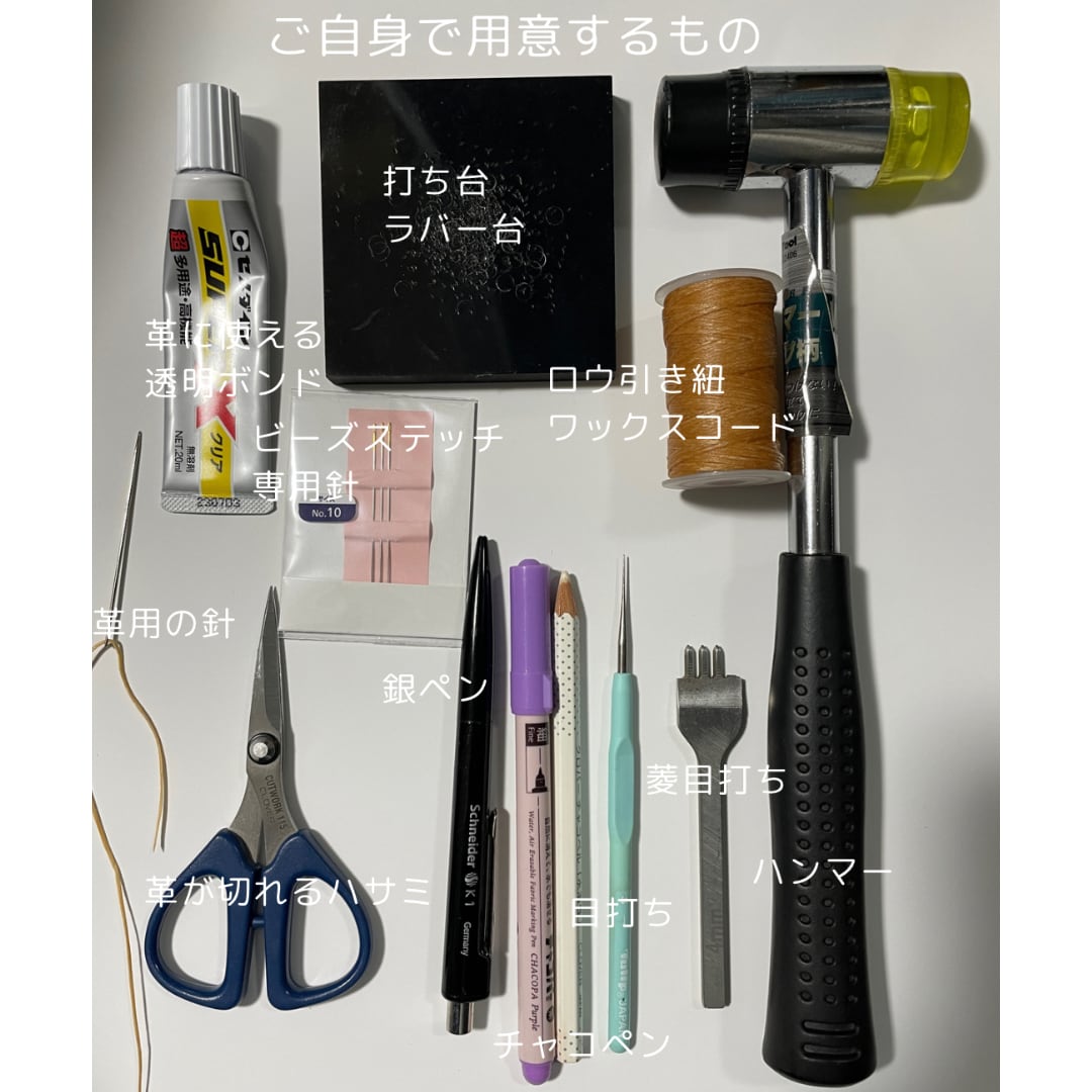 革に穴を開ける菱目打ち(オプションであらかじめ穴を開けておくこともできます)