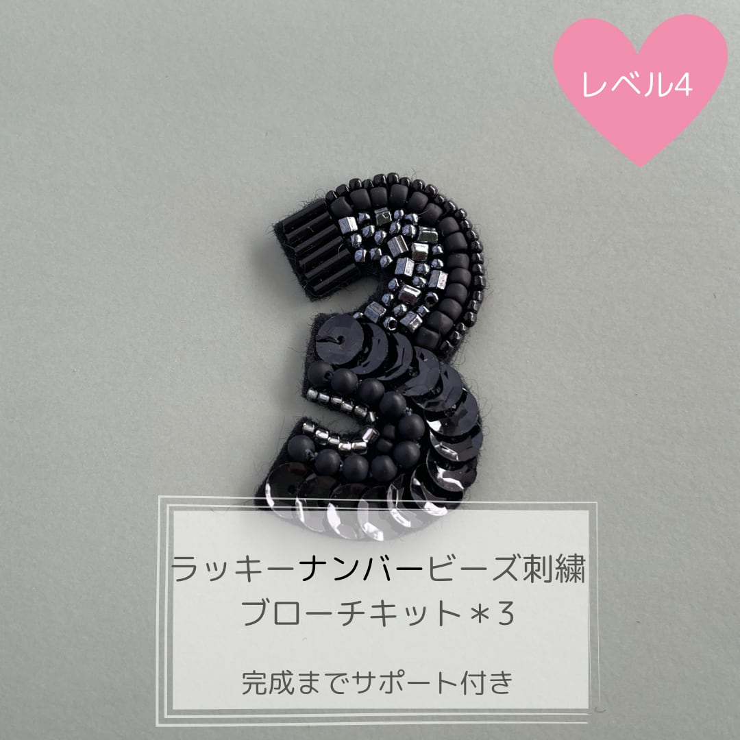 ラッキーナンバービーズ刺繡ブローチキット*3