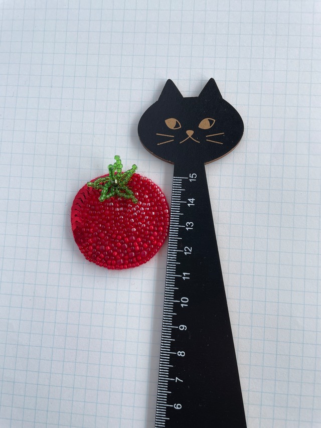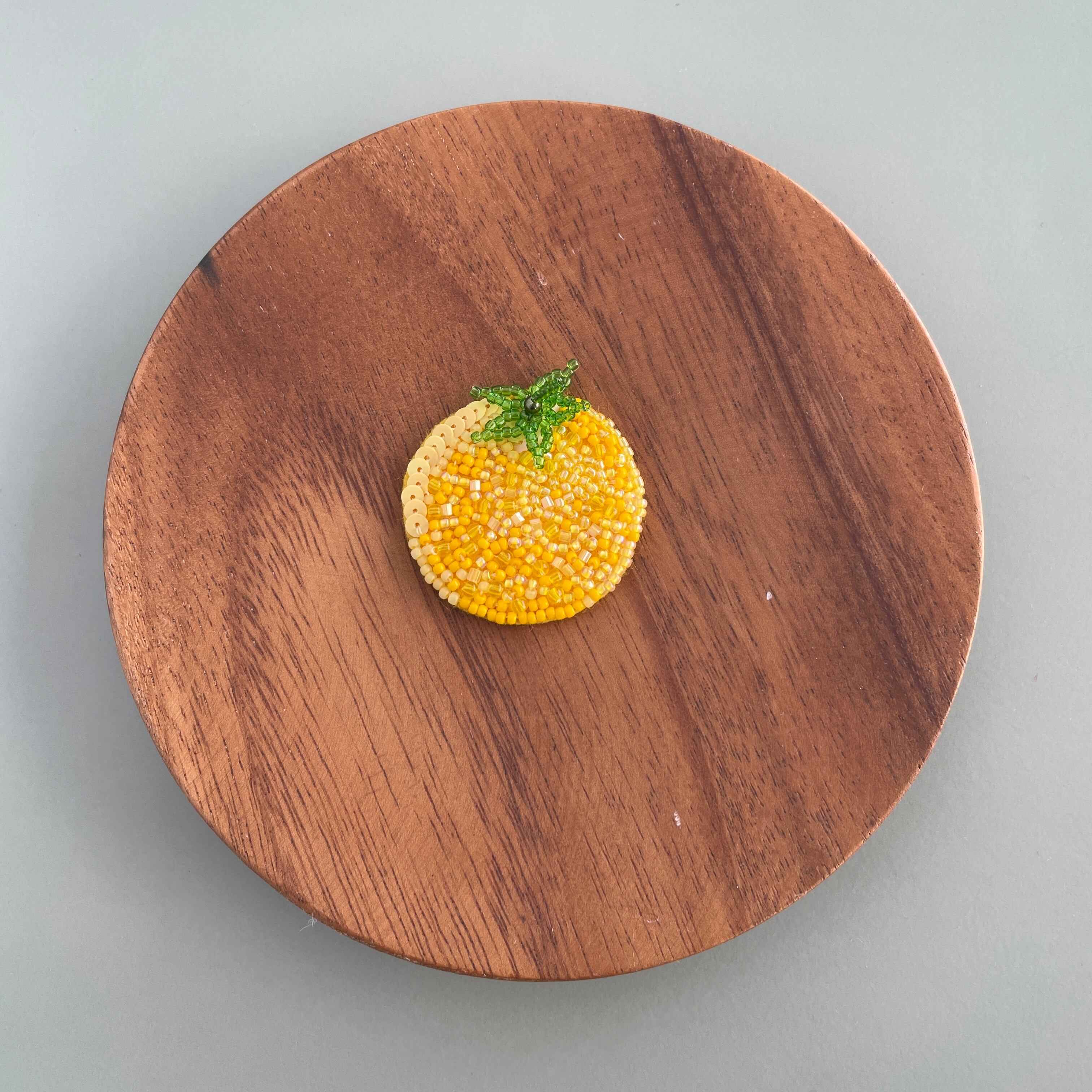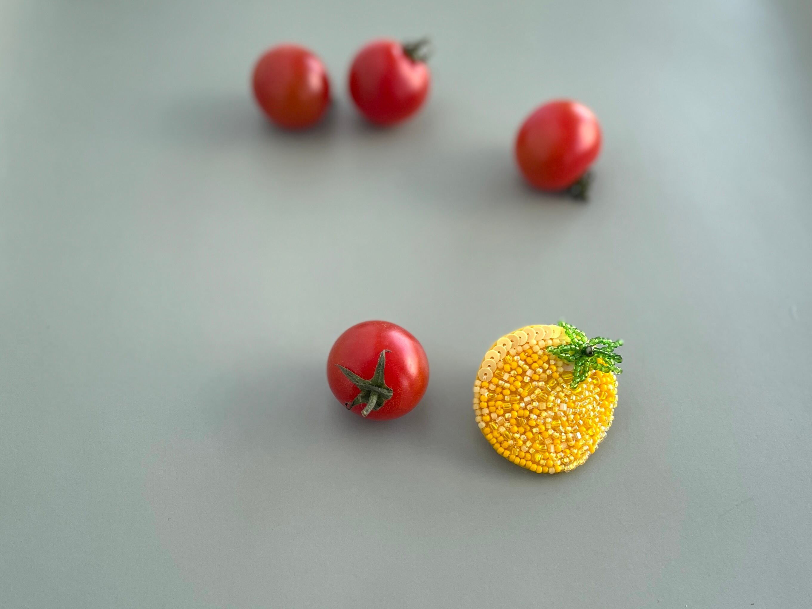 ミニトマトのビーズ刺繍ブローチ*イエロー