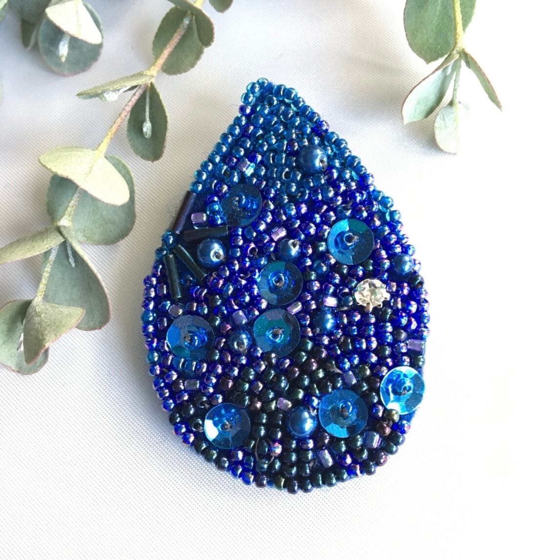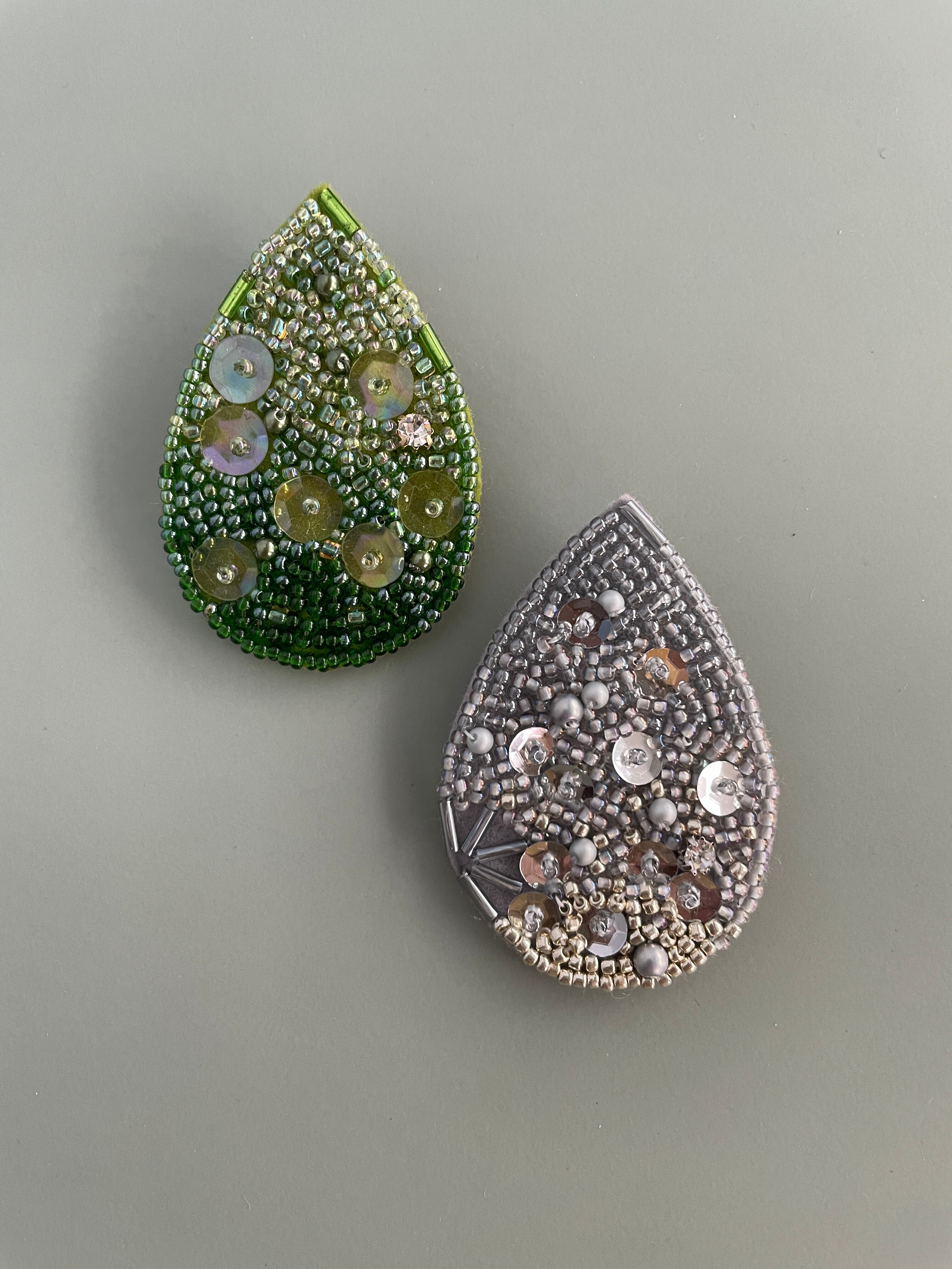 レインドロップのビーズ刺繍ブローチをリニューアルしました