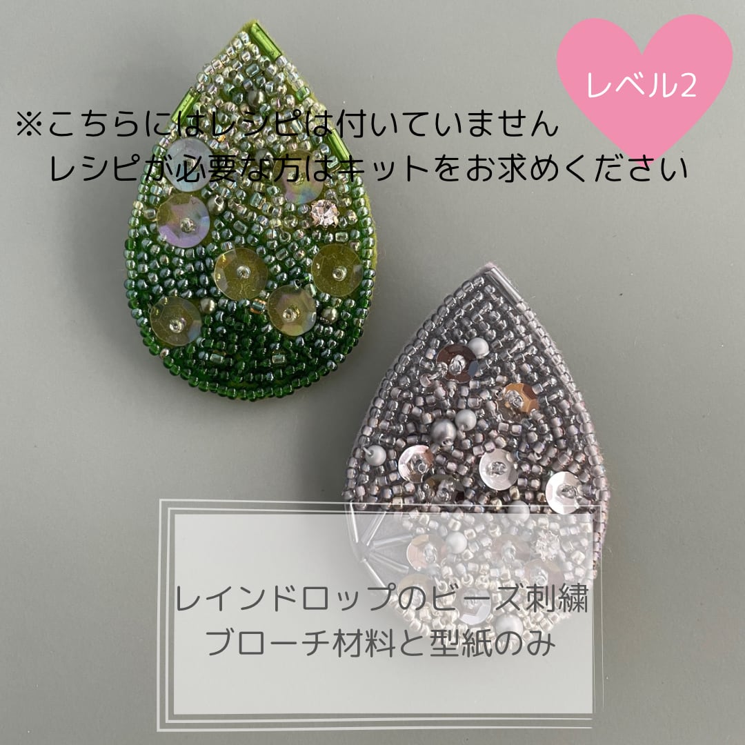 【材料と型紙のみ】レインドロップのビーズ刺繡ブローチ