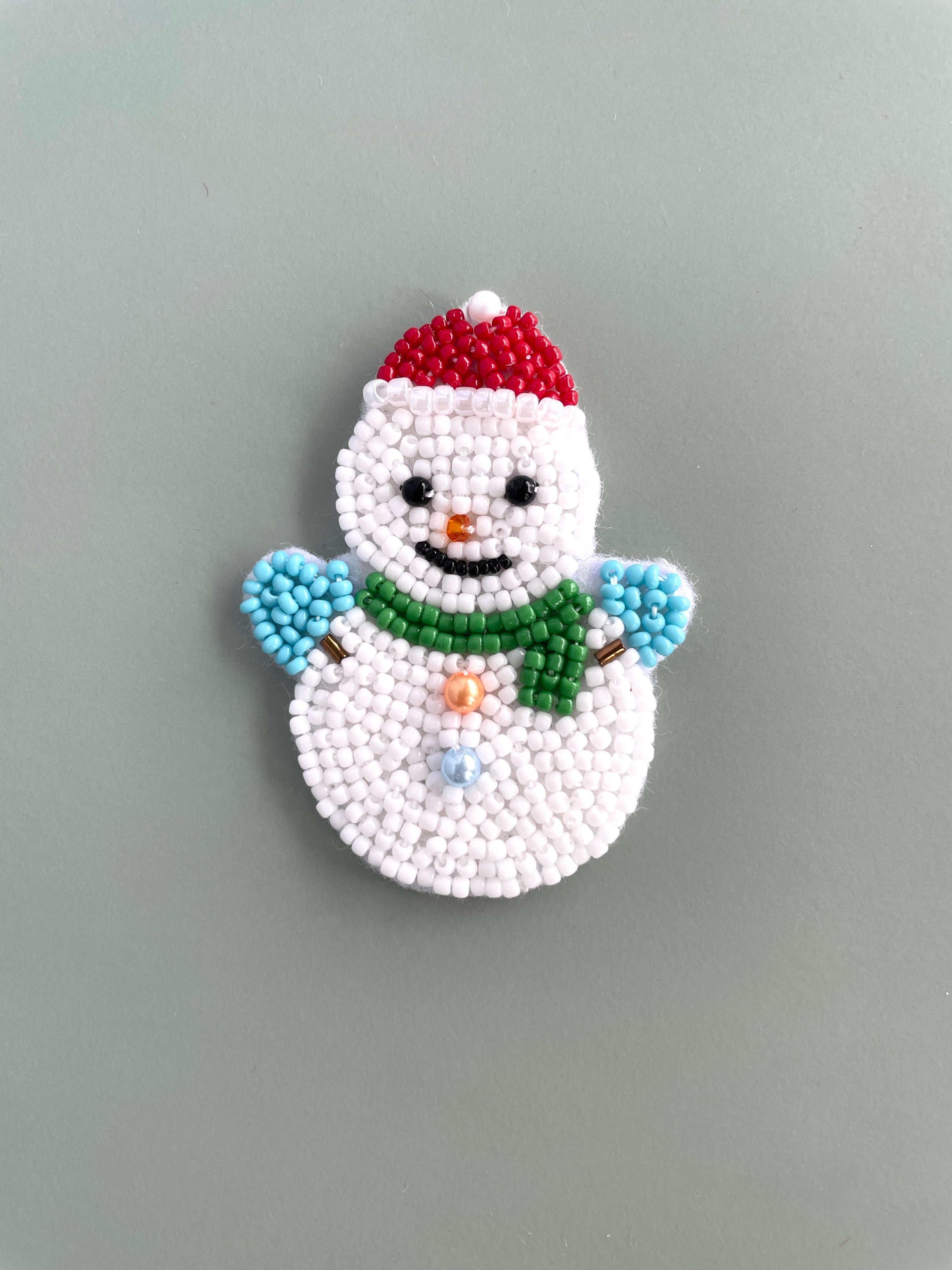 雪だるまのビーズ刺繍ブローチキット