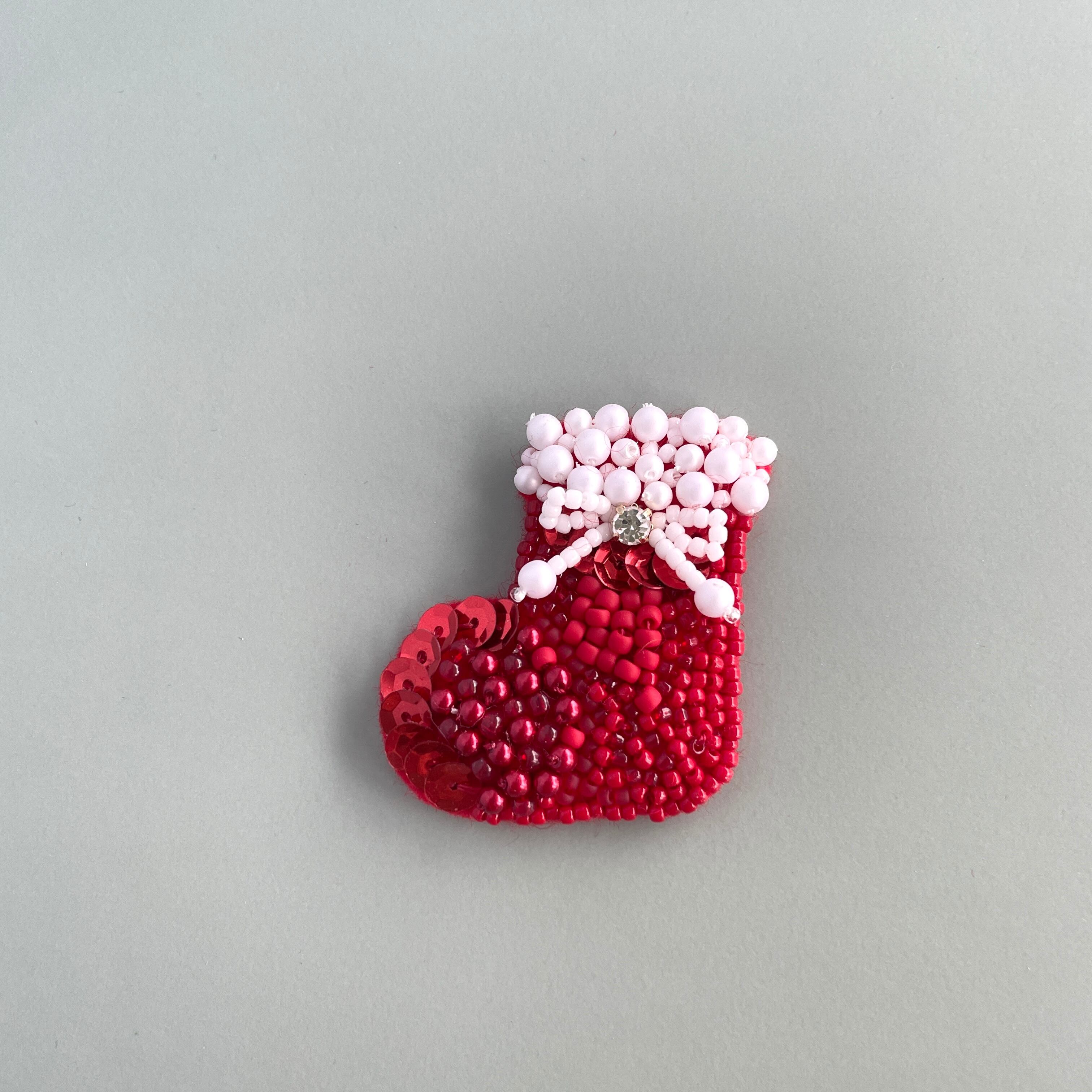 クリスマスにお菓子を入れるクリスマスブーツをビーズ刺繍で作りました