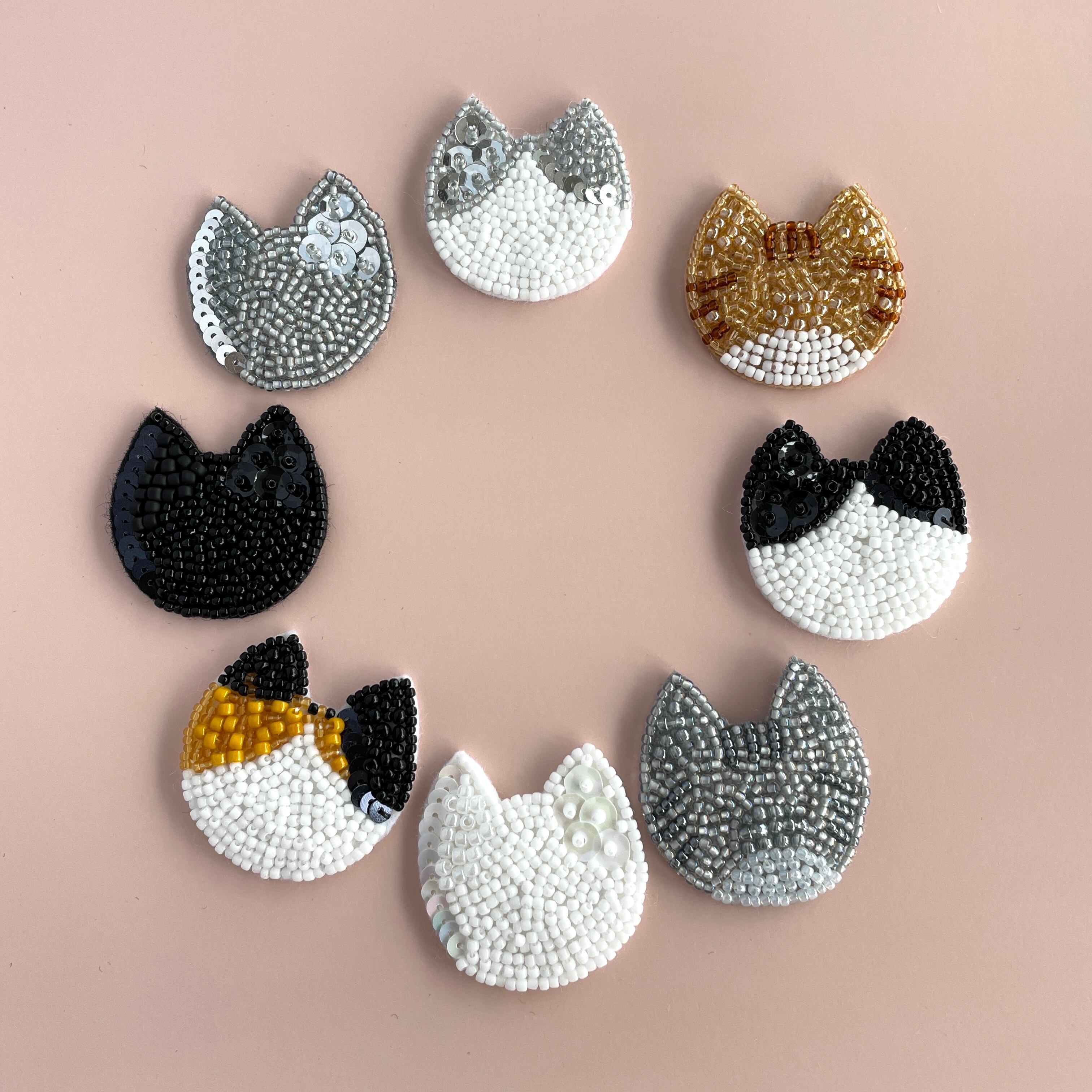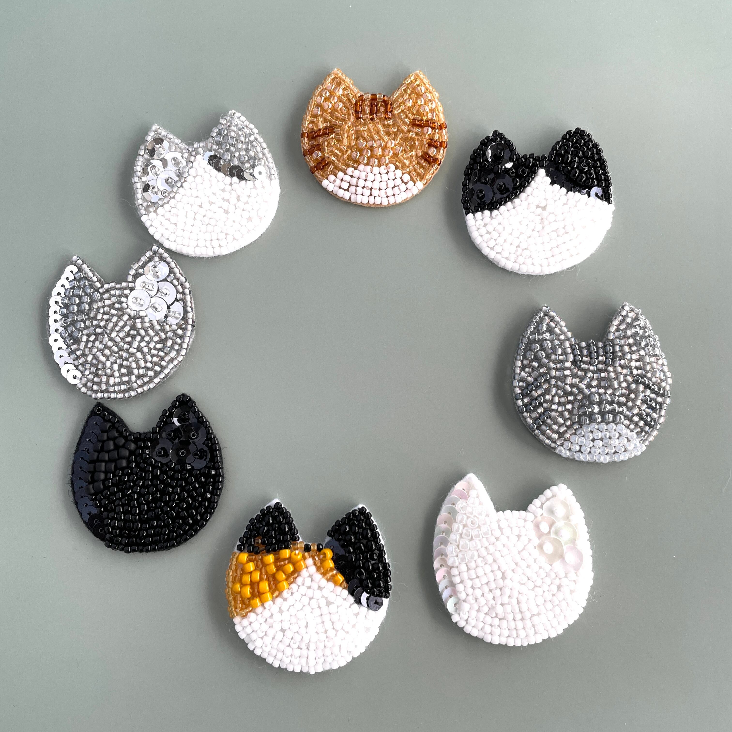 どの子がすき?cat faceビーズ刺繍ブローチ